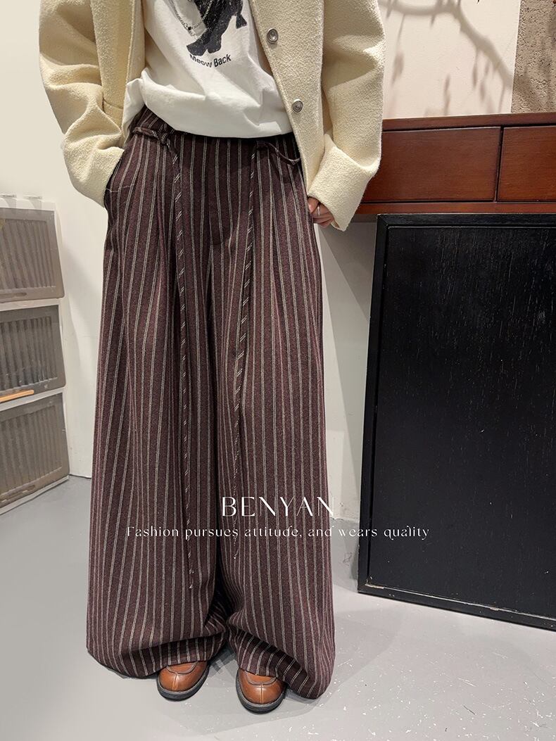 u29588 レトロ カジュアル ストレート パンツ ストライプ ワイドパンツ レディース 2025秋新作