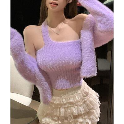 ブラウス モヘアアンサンブルニット レディース韓国 ニット