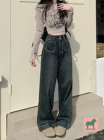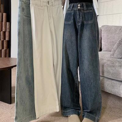 2024春夏パンツ デニム ジーンズ ワイド ストレート ハイウエスト 脚長効果 美脚効果 細見え 秋冬 白 カジュアル 韓国ファッション レディース お出かけ