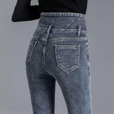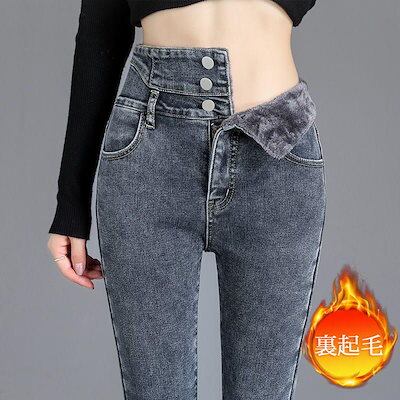 新品 大人気 デニムパンツ レディース ジーンズ 裏起毛 裏ボア ハイウェスト 暖かい 秋冬 ストレート Gパン ボトムス 美脚 脚長 保温 防風 おしゃれ