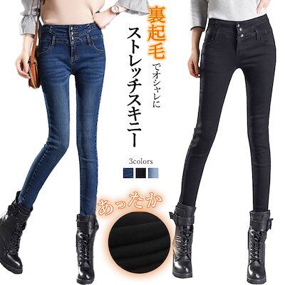 裏起毛スキニーで冬もオシャレにスキニーパンツ レディース スラックスパンツ 裏起毛 秋冬 ストレッチ デニム あったかい ハイウエスト ジーンズ 細身 ボトムス 美脚見せ カジュアル かわいい