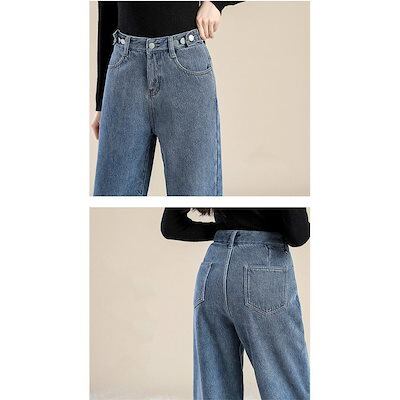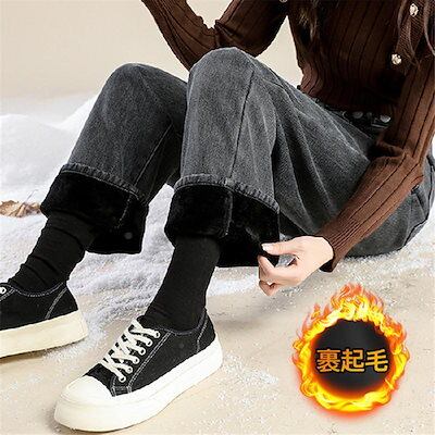 デニムパンツ レディース ワイドパンツ 裏起毛 裏ボア ジーンズ 厚手 ハイウエスト 秋冬 ジーパン 保温 防寒 暖かい ロングパンツ ゆったり 通勤