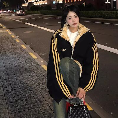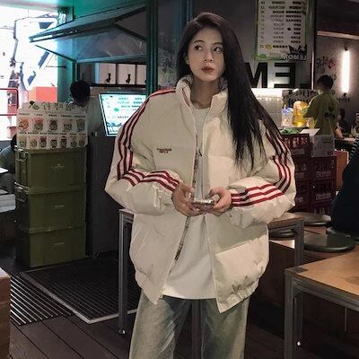 2025 ステッチストライプダウンジャケットレディースジャケット韓国風ルーズ厚手パンジャケットトレンド