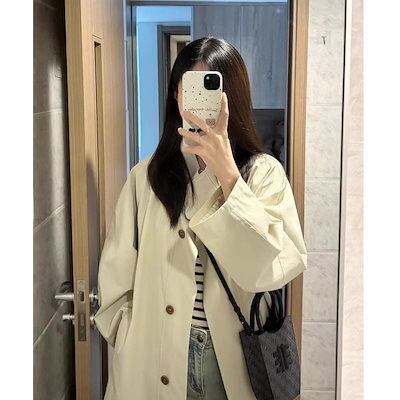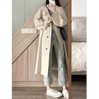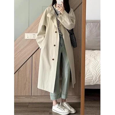 韓国ミドル丈ウインドブレーカーコートレディース大きいサイズ小さいブリティッシュカジュアルコート