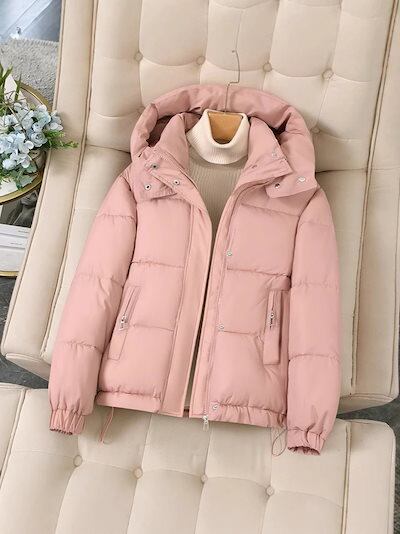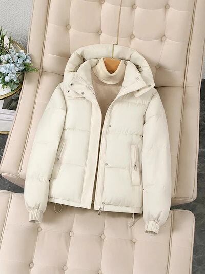 レディース ショート ダウン コットン ジャケット 2025 韓国スタイル フード付き 厚みのあるコットン ジャケット スモール コットン ジャケット トレンド