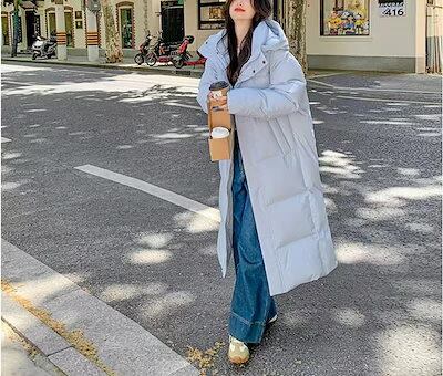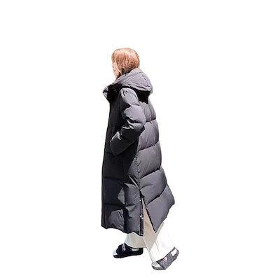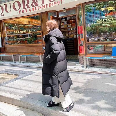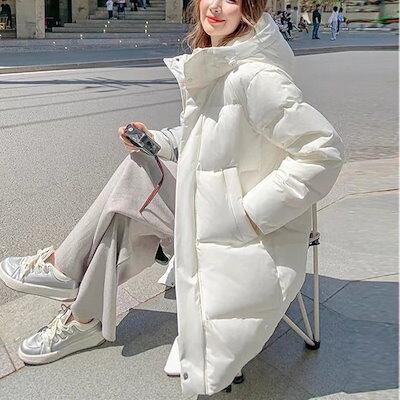 2025韓国風フード付き厚みダウンジャケットレディースゆったりロングパンジャケットファッショナブルな膝上ジャケット