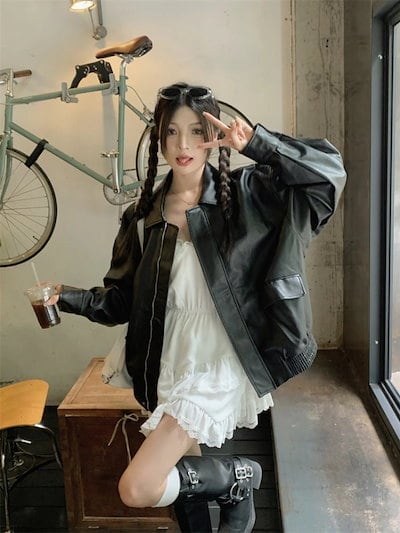 25 長袖 ジャケット かわいいトレンドショートレディース韓国ストリート アウター ブラック羽織り合成 バイカラー きれいめファッション色っぽ女っぽカジュアルきれいめ大人っぽ上品清楚フレンチ