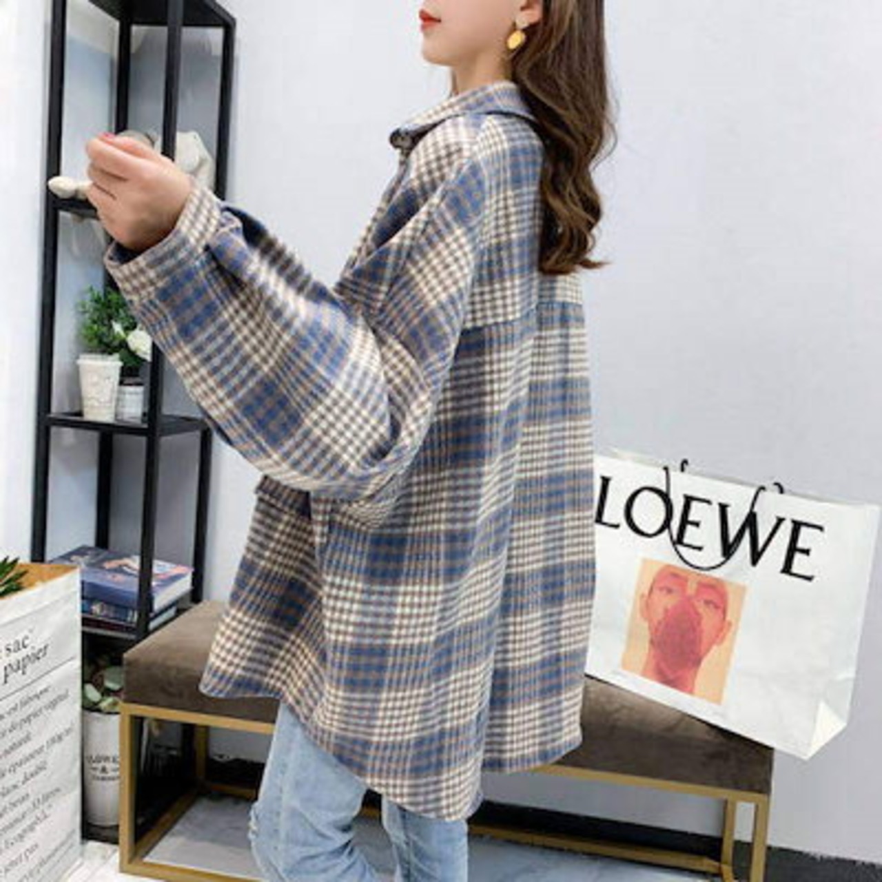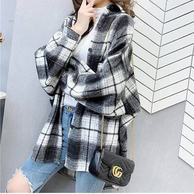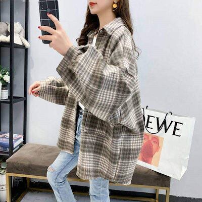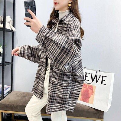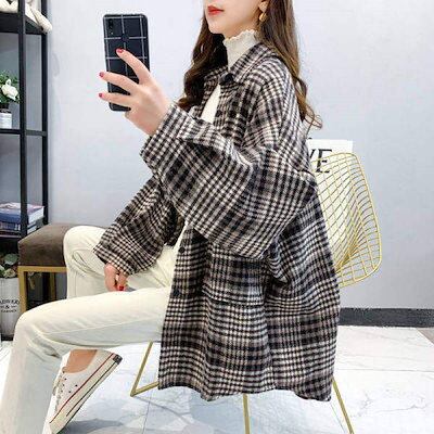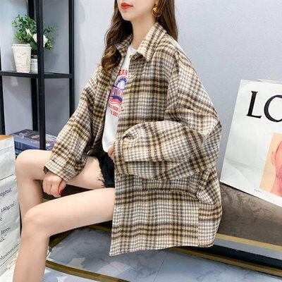 レディースミドル丈チェック柄ウールコート2025レトロニッチ多用途小さな香り人気韓国毛織物