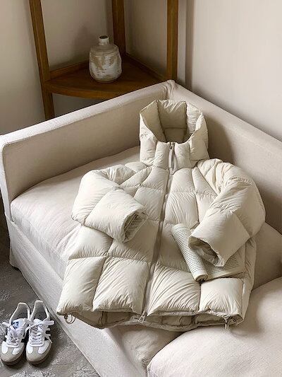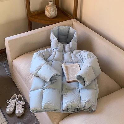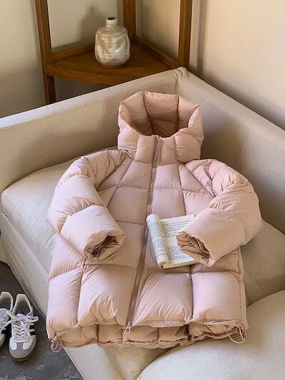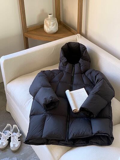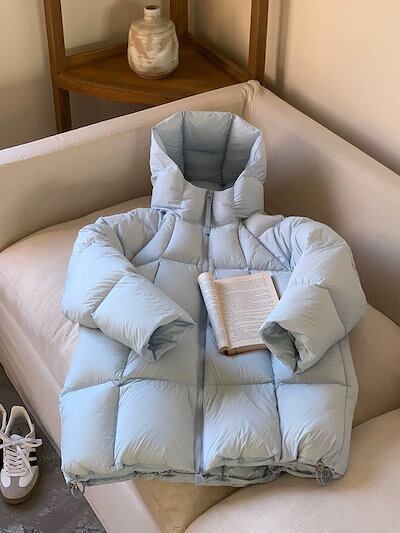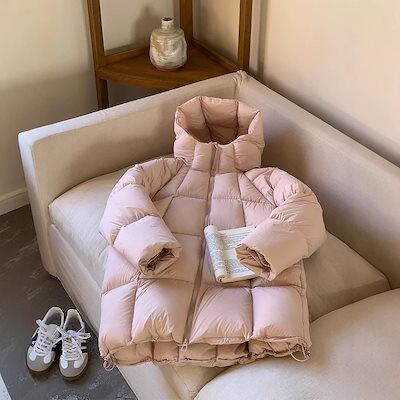 スーパーソフトパフフィールソフト2025韓国スタイルルーズフード付きダウンジャケットレディース厚みのあるホワイトダックダウンジャケット