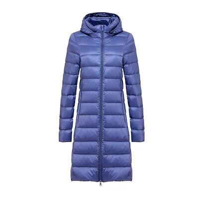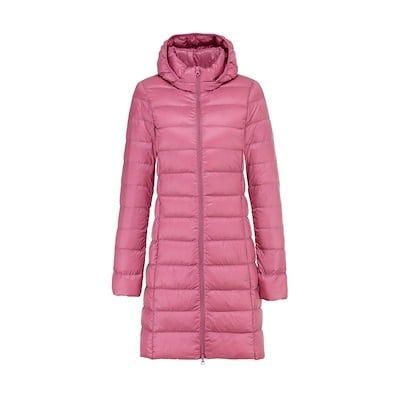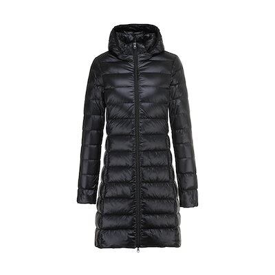 2025軽量ダウンジャケットレディースミドル丈ホワイトダックダウン韓国風軽量スリムジャケットフード取り外し可能