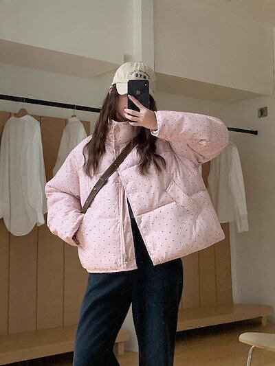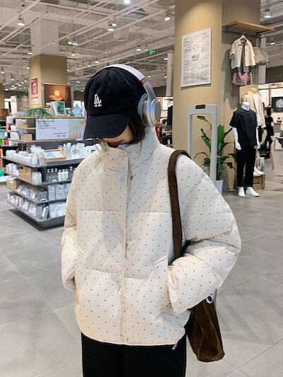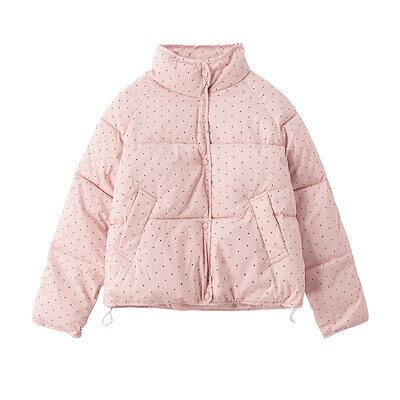 2025綿服レディースプリントショート韓国風小花柄小スタンドカラーカレッジスタイルブレッドジャケット