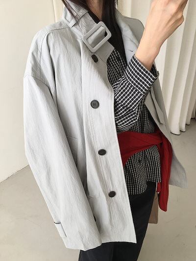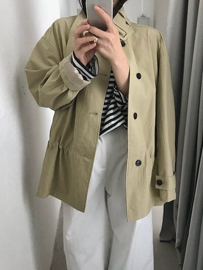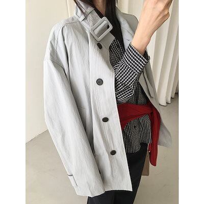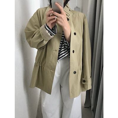 Think サーティーンラインズ韓国風スタンドカラーデザインウインドブレーカーレディース 2025 ローウエストハンサムドローストリングミドル丈ジャケット