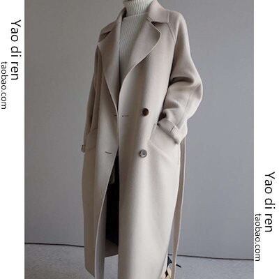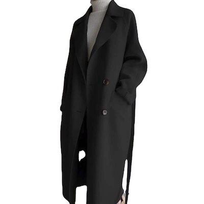 レディースウールコート2024新作韓国風ロングおしゃれゆったり膝上ウエストベルト付きウールコートレディース
