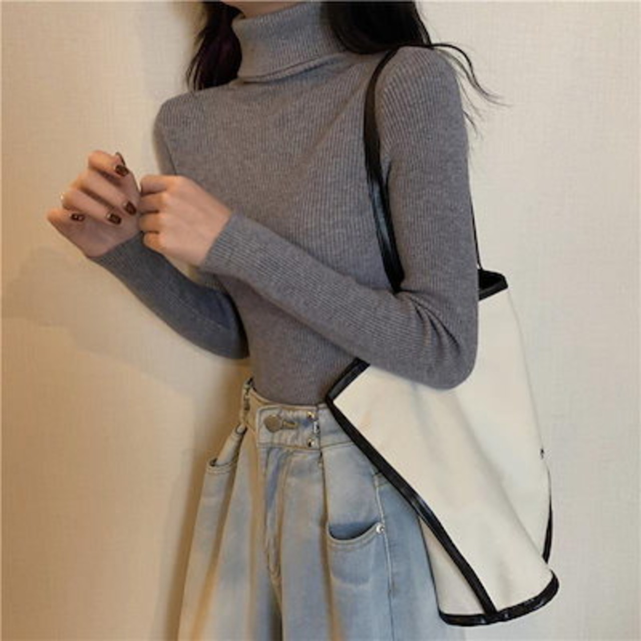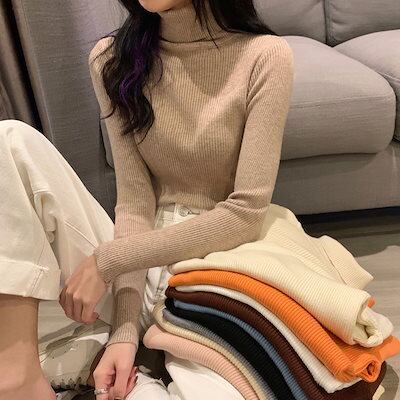 人気なリブニット ニットあったか!カシミヤタッチラウンドネックニットラブリータートルネック秋冬2022新型韓国版黒のオールマイティーハイネック洋風仕立て長袖ニット下着レディーストップスラッシュ