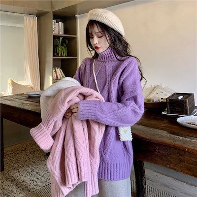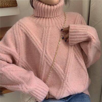 人気なリブニット ニットあったか!カシミヤタッチラウンドネックニットラブリータートルネック 秋冬は着てもだるい風は大きいサイズはゆったりしている韓国版タートルネックセーター女性2022新型厚手ニットト