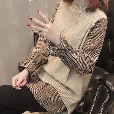 人気なリブニット あったか!カシミヤタッチラウンドネックニットラブリータートルネックレイヤードトップスベーシックニット人気爆発ニットベスト?長袖ブラウス?ニットベスト 韓国ファッションレイヤードシャツ