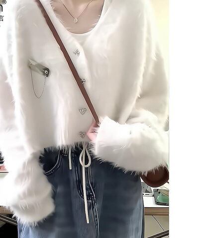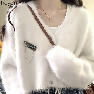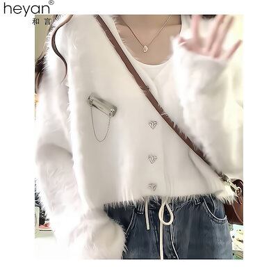 ロングスリーブトップス 韓国ファッション 白vネックニットカーディガンレディース秋冬新作セーターコートフレンチ優しさ着やせ高級感トップス