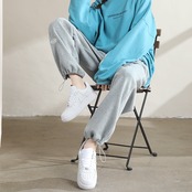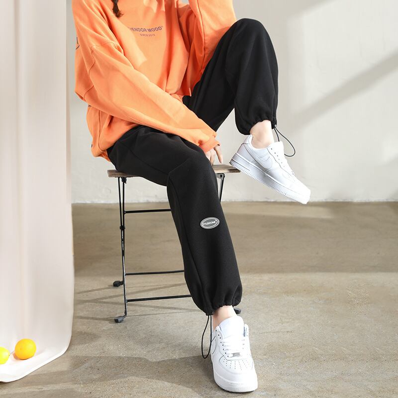 束足ズボン女性韓国版秋冬ゆるい高腰広脚ズボン学生レジャー運動ズボン潮