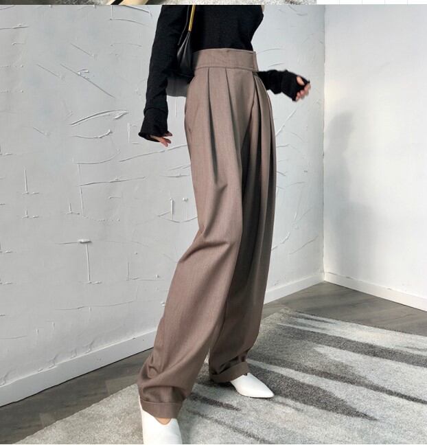 2022春夏新作 ロングパンツ ワイドパンツ ロング丈ズボン ハイウエスト プリーツ レディース 着痩せ
