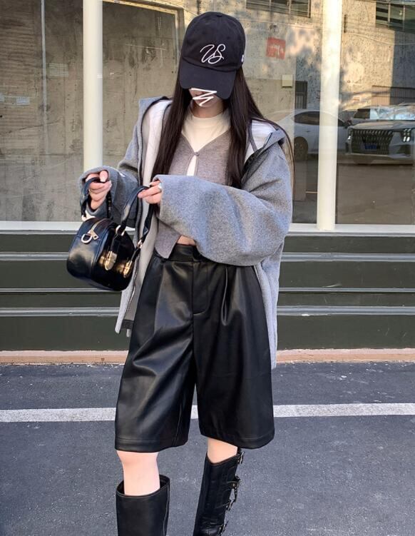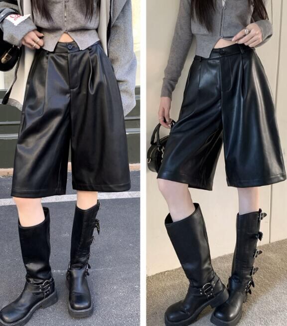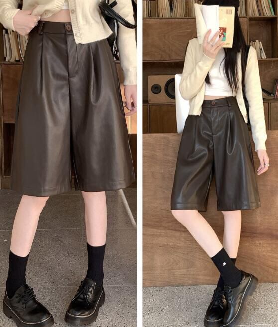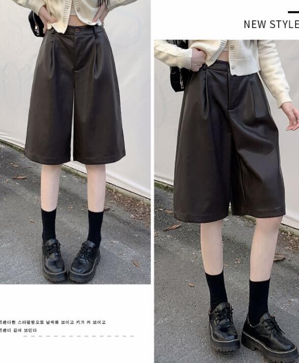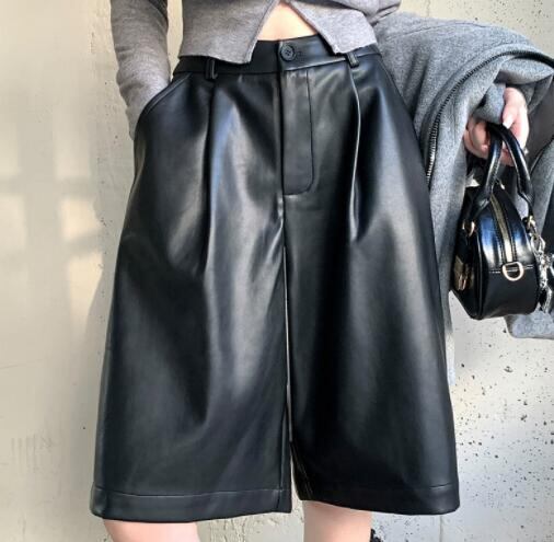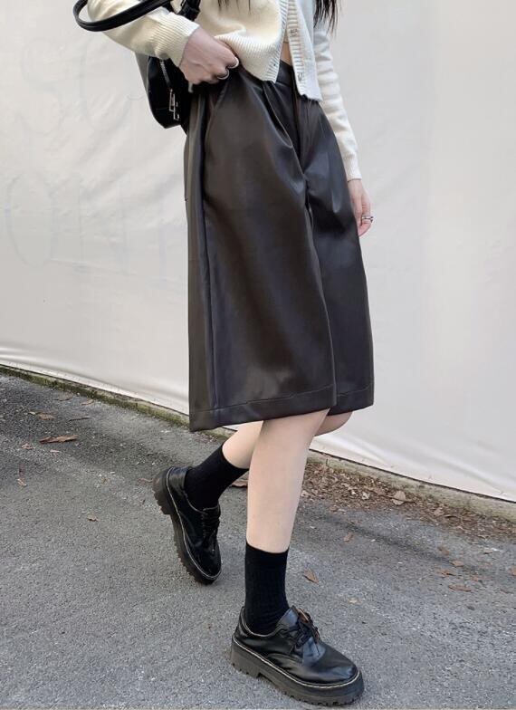 ボトムス ズボン パンツ ワイドパンツ ハーフパンツ PU 秋物 レディース
