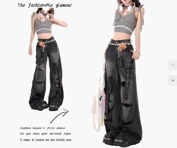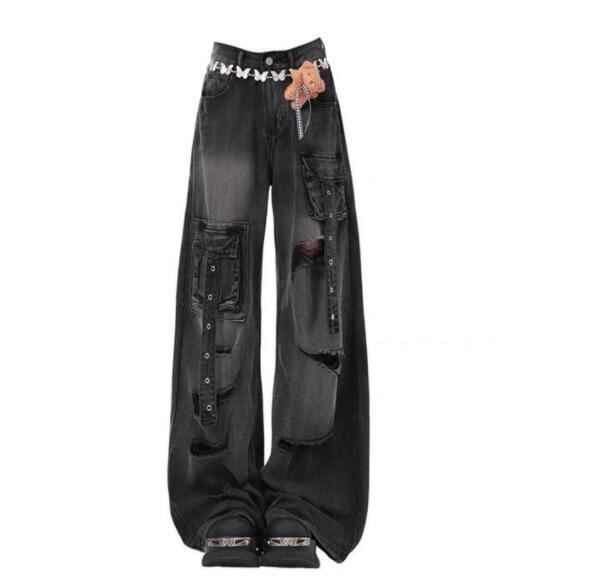ダメージ加工ジーンズ デニム パンツ ズボン ワイドパンツ レディース