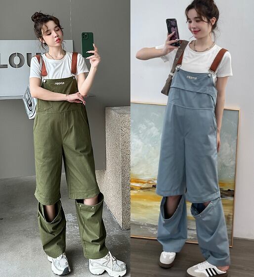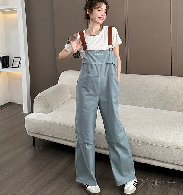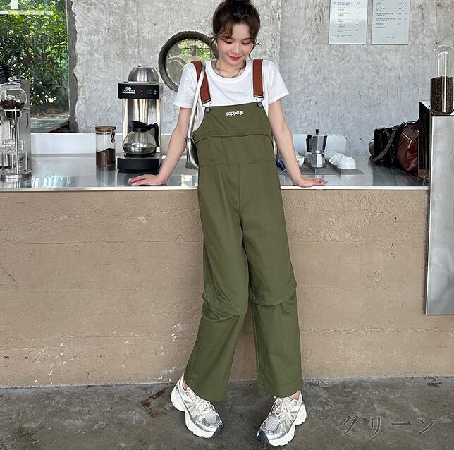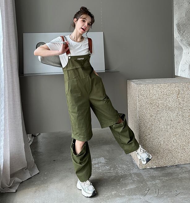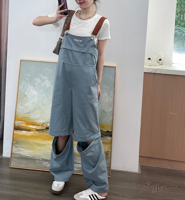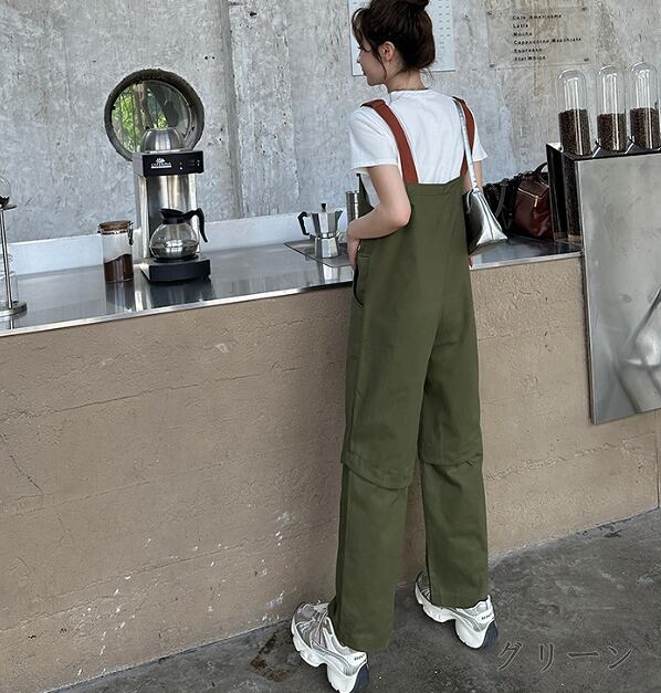 全2色 オールインワン オーバーオール ノースリーブ 切り替え 体型カバー 着痩せ シンプル