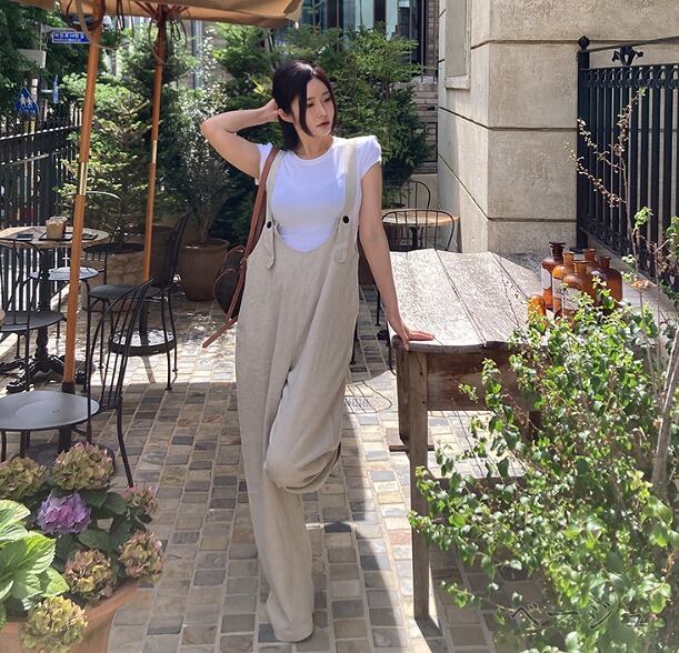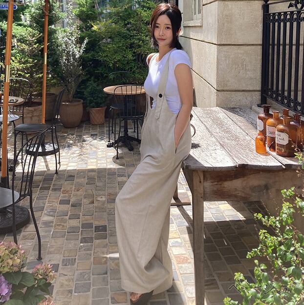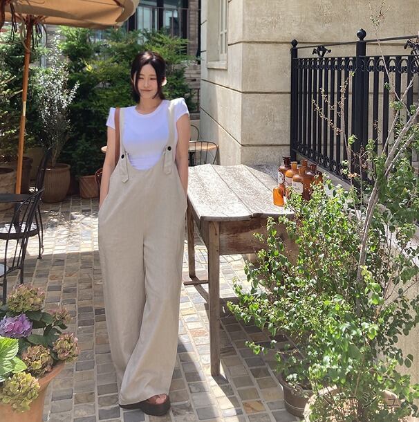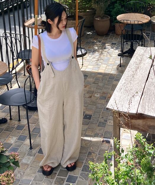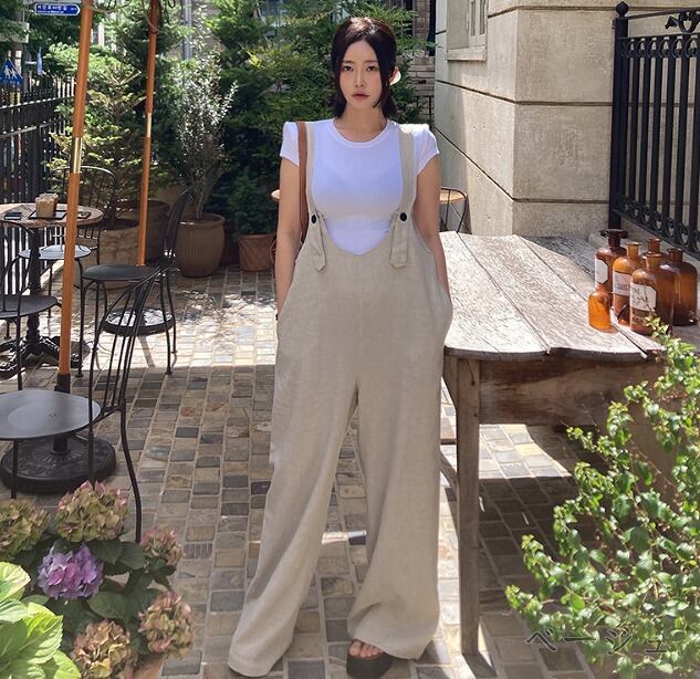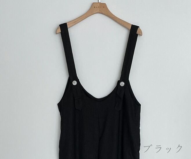 全2色 オールインワン オーバーオール ノースリーブ 切り替え 体型カバー 着痩せ シンプル カジュアル