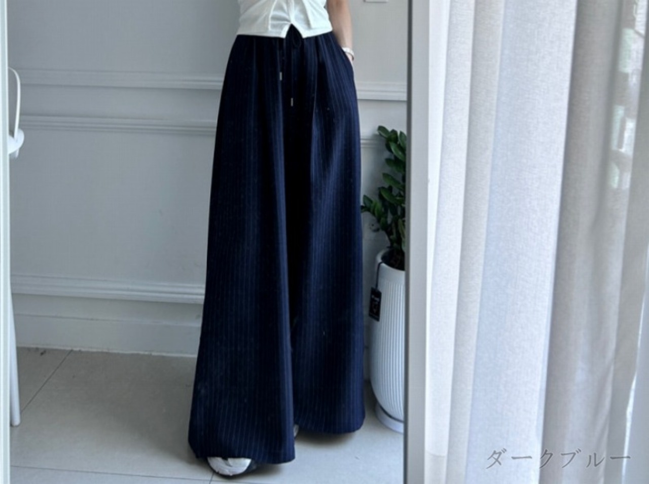 全2色 ワイド バギーパンツ 切り替え 体型カバー 着痩せ カジュアル