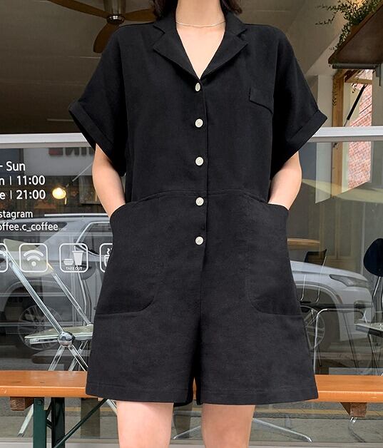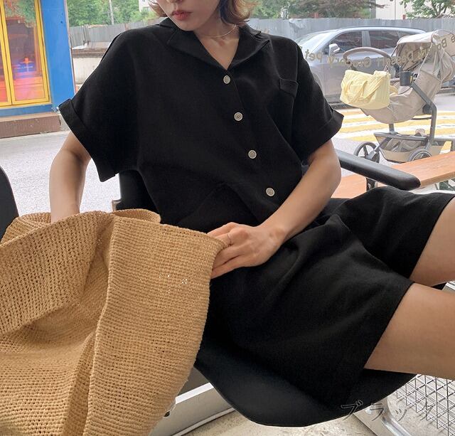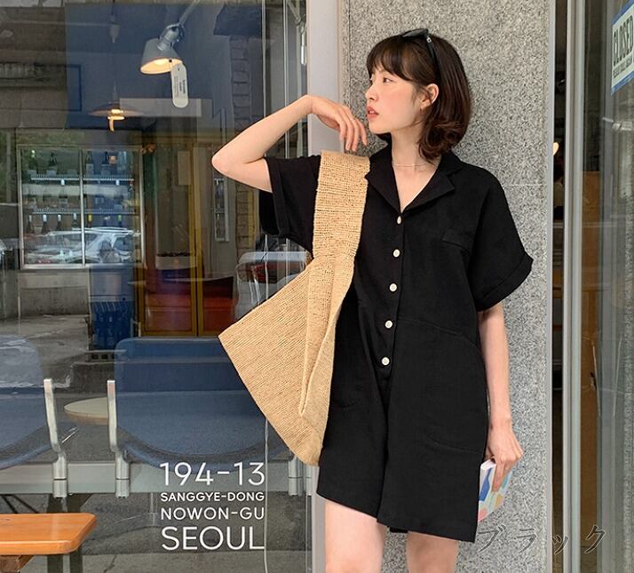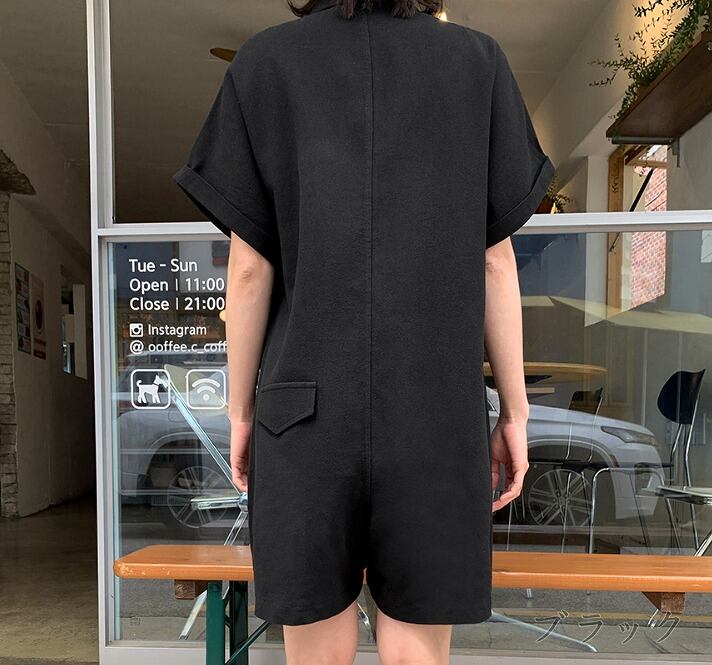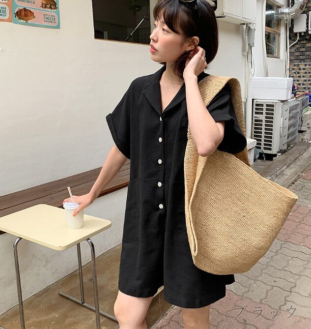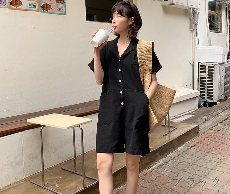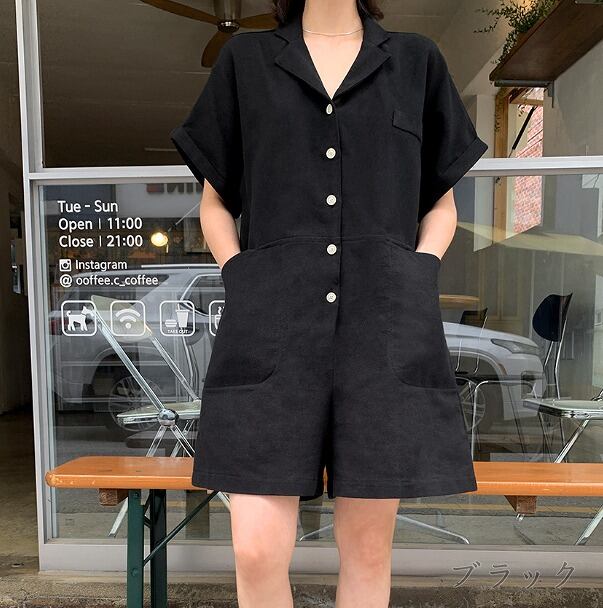 オールインワン オーバーオール 半袖 切り替え 体型カバー 着痩せ カジュアル