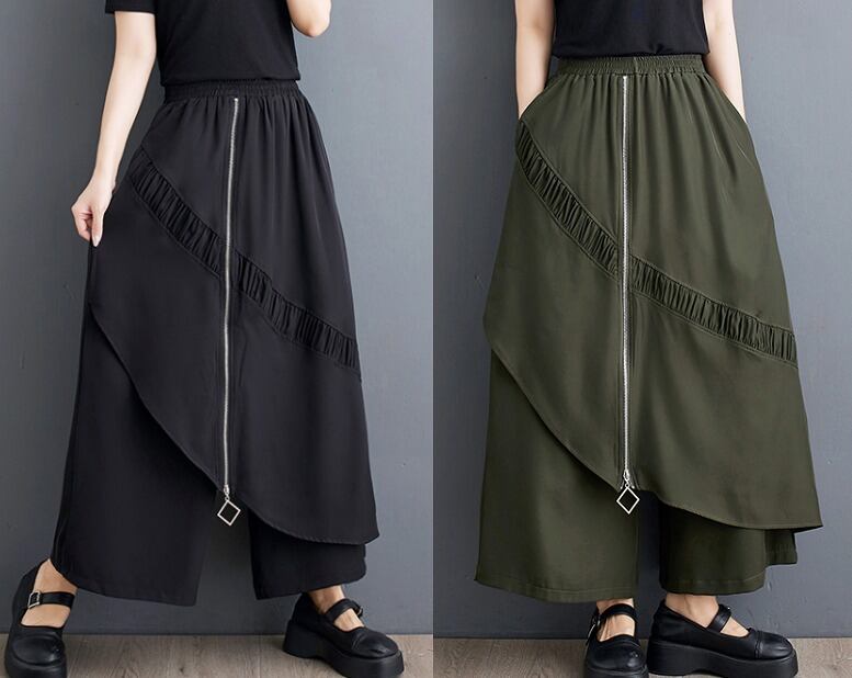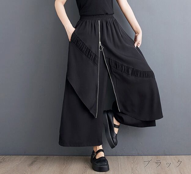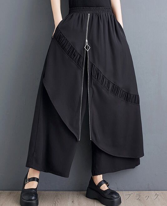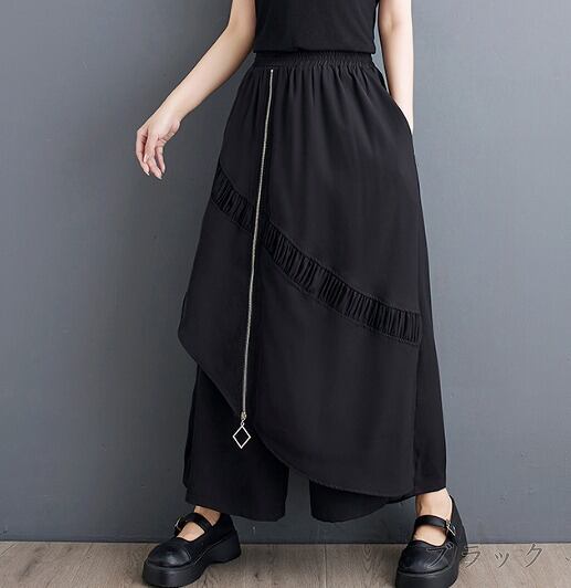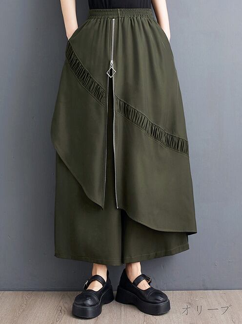 全2色 キュロット フリル 切り替え 体型カバー 着痩せ 無地 シンプル