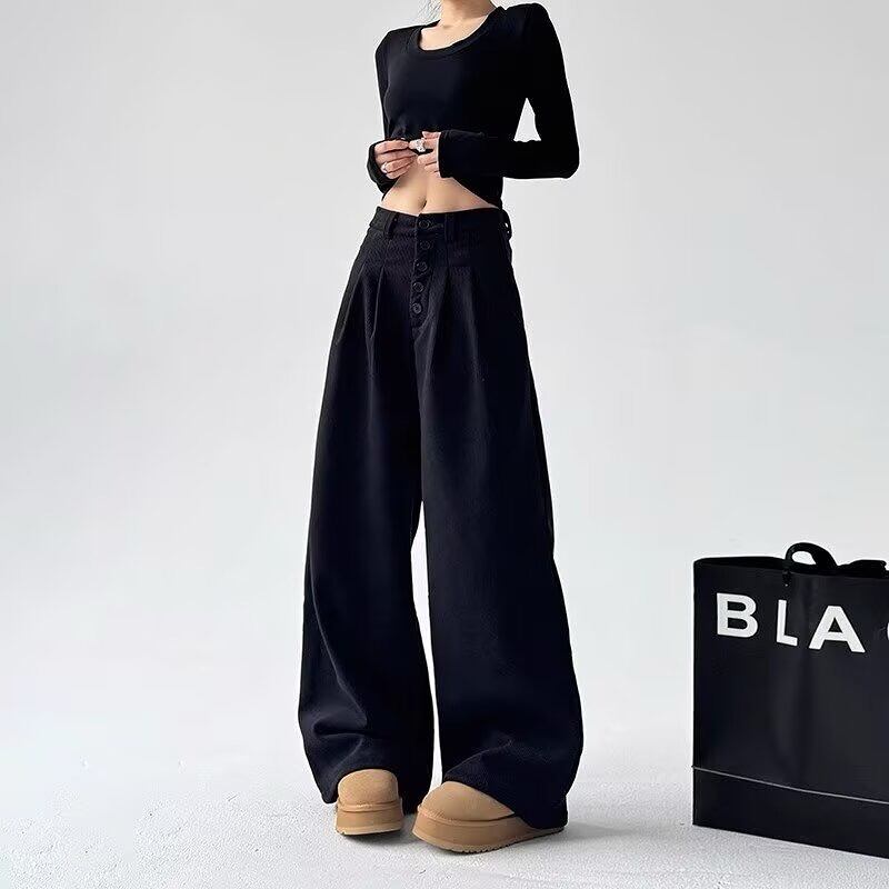 全2色 パンツ ハイウエスト 切り替え 体型カバー 着痩せ シンプル