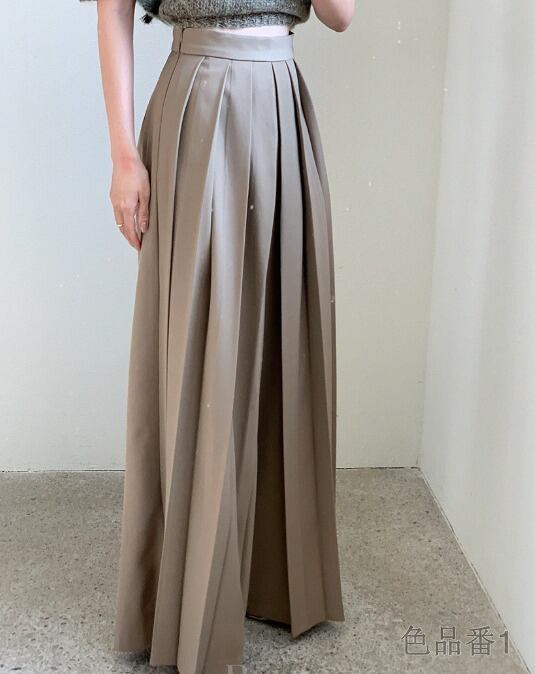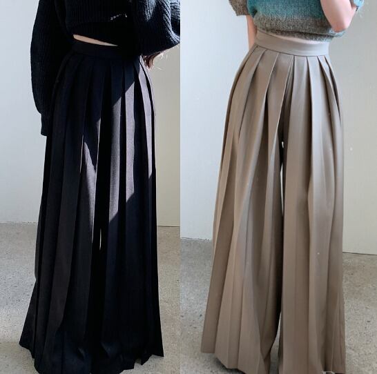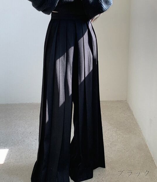 全2色 ワイド バギーパンツ シャーリング 切り替え 体型カバー 着痩せ シンプル