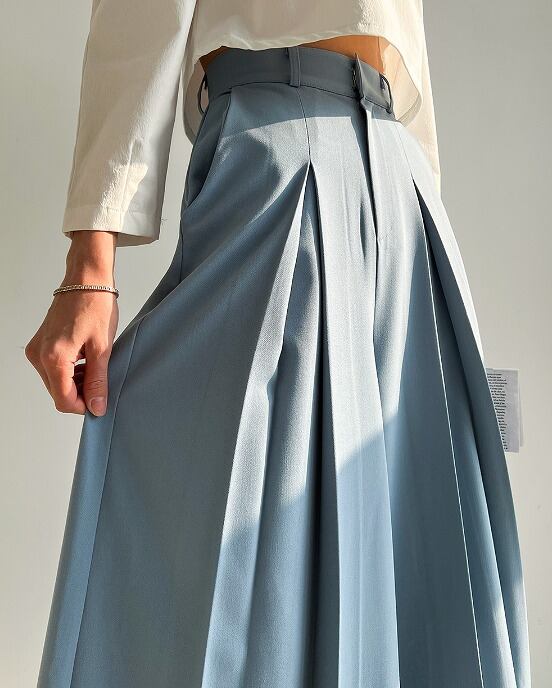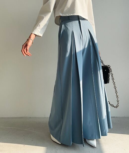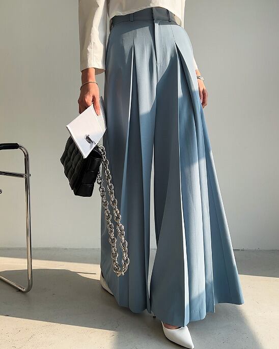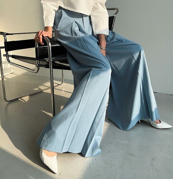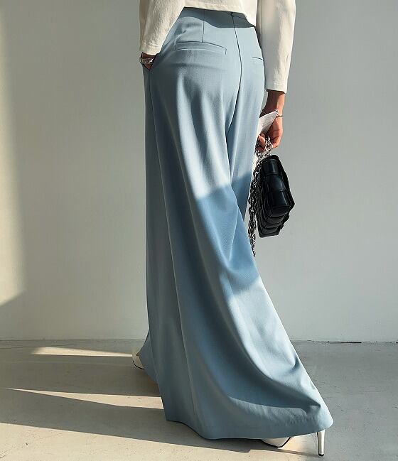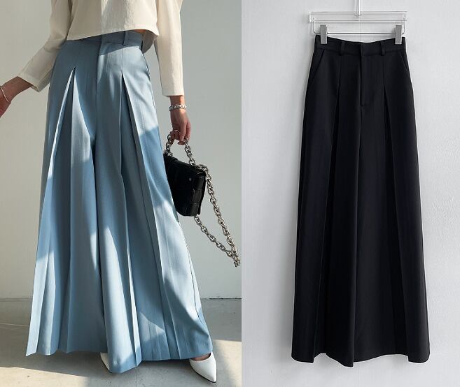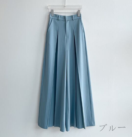 全2色 ワイド バギーパンツ シャーリング ハイウエスト 切り替え 体型カバー 着痩せ カジュアル