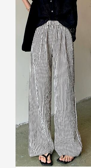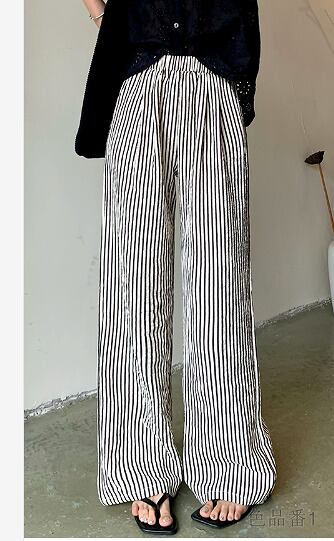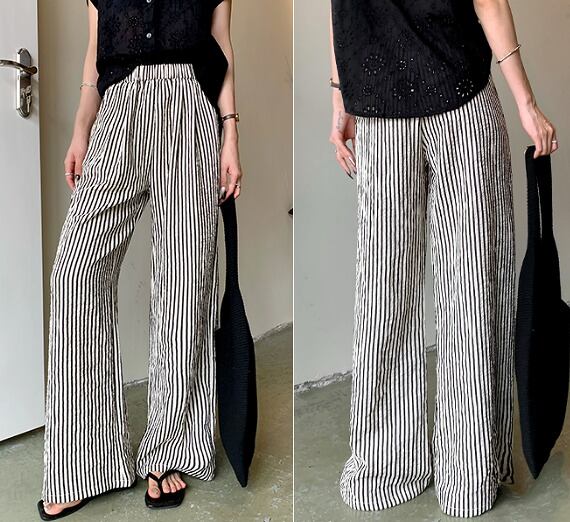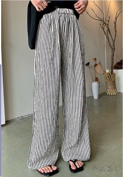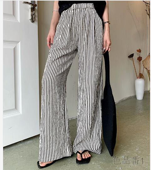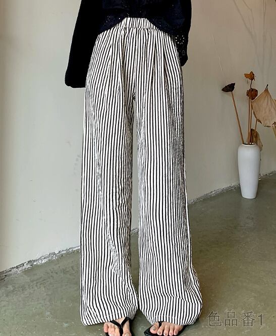 ワイド バギーパンツ 切り替え バイカラー 体型カバー 着痩せ ストライプ柄 シンプル