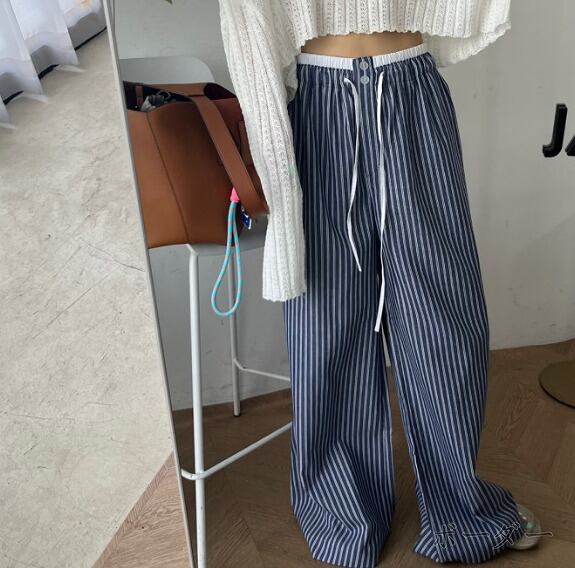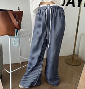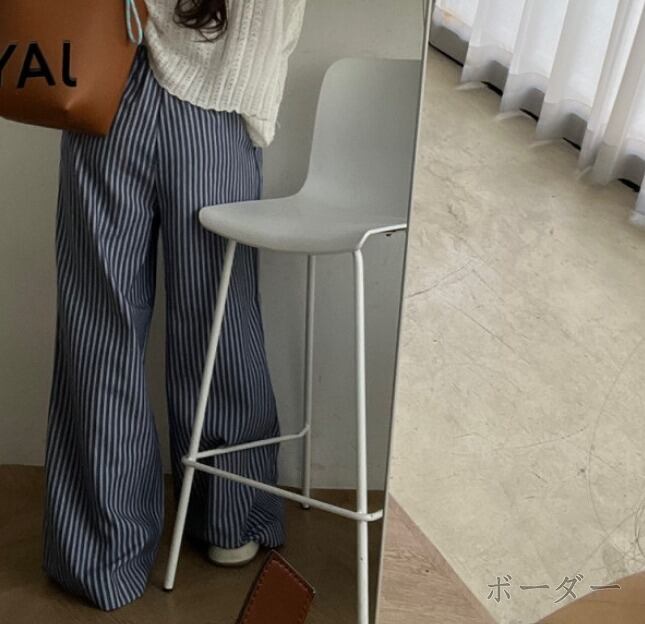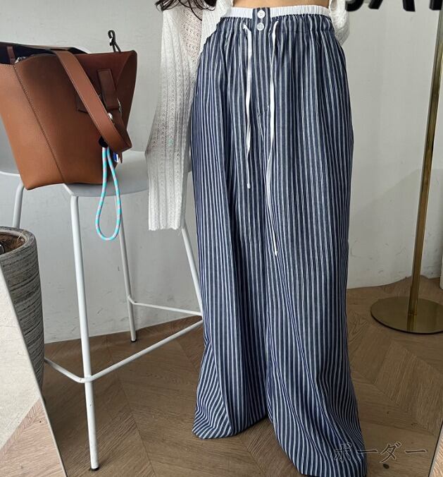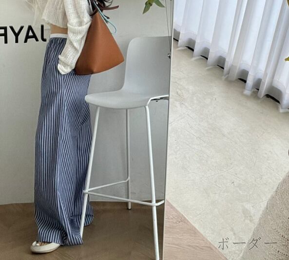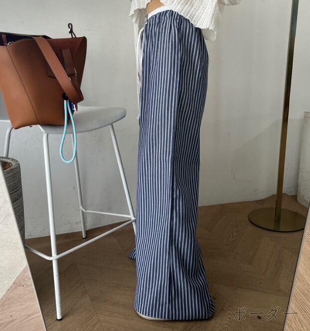 ワイド バギーパンツ 切り替え バイカラー 体型カバー 着痩せ ストライプ柄 カジュアル