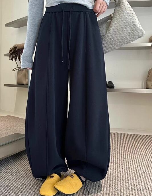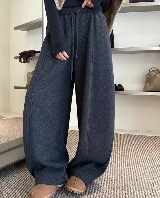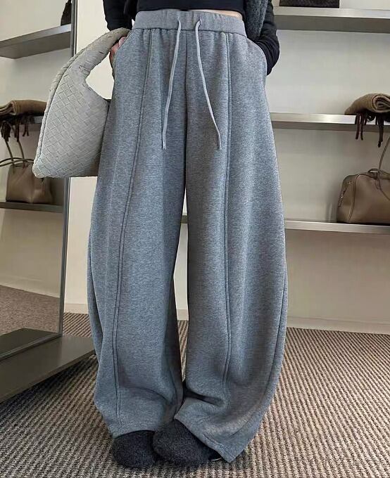 全3色 パンツ 裏起毛 切り替え 体型カバー 着痩せ シンプル カジュアル