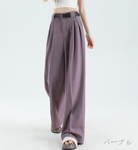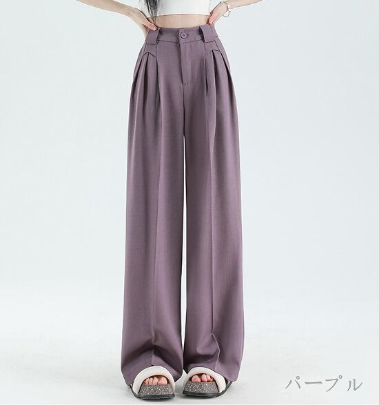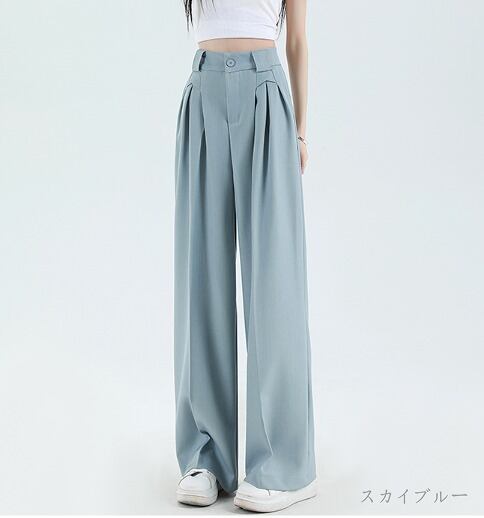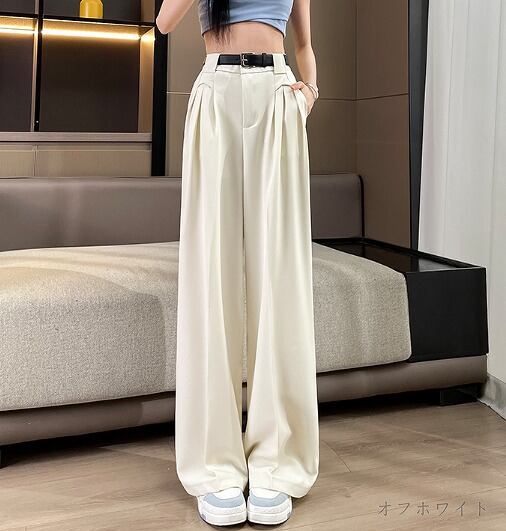 全5色 ワイド バギーパンツ ハイウエスト 切り替え 体型カバー 着痩せ カジュアル