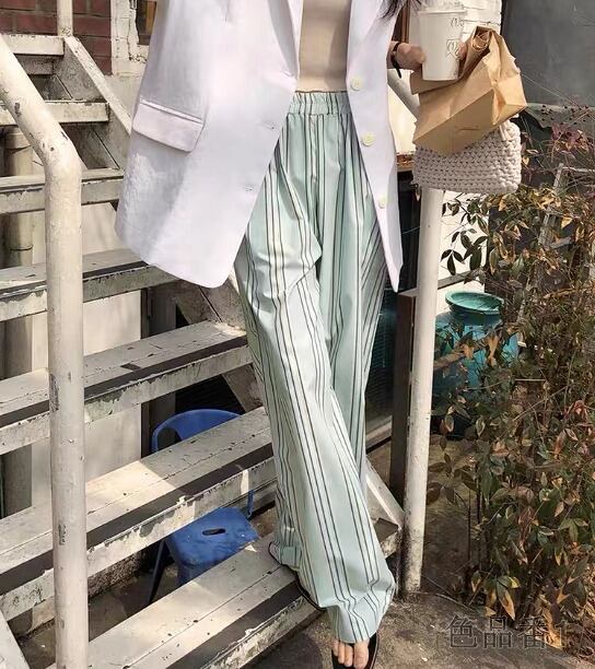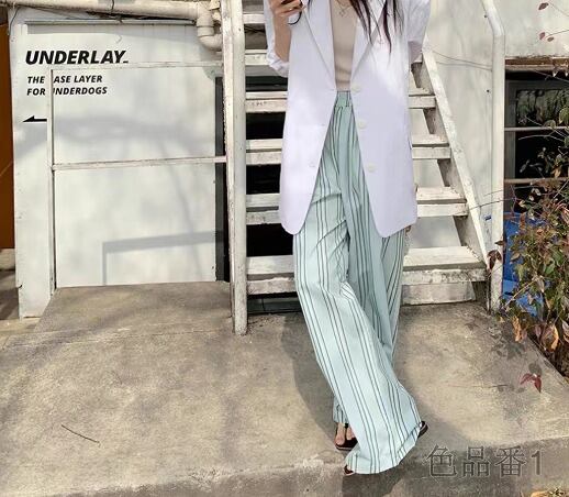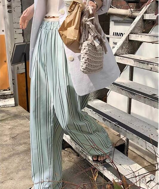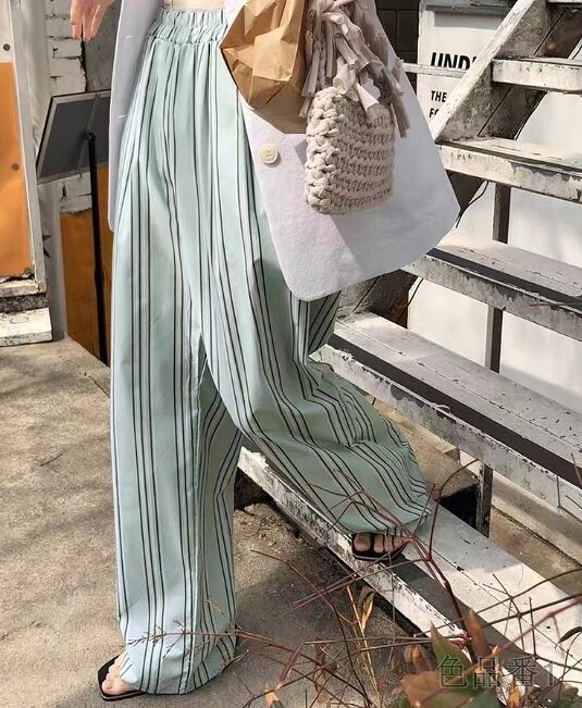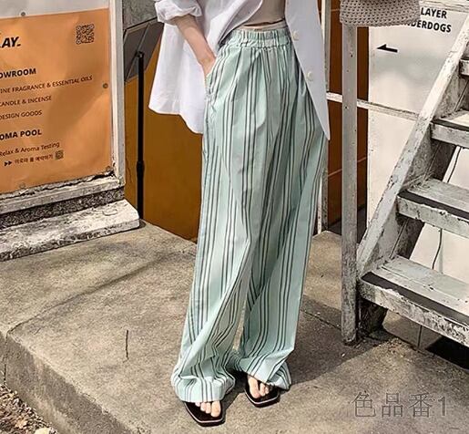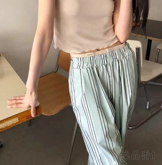 ワイド バギーパンツ 切り替え バイカラー 体型カバー 着痩せ ストライプ柄 シンプル カジュアル