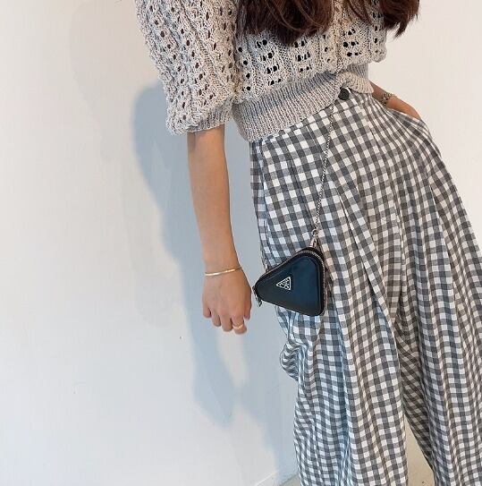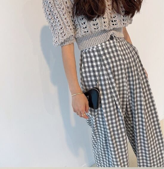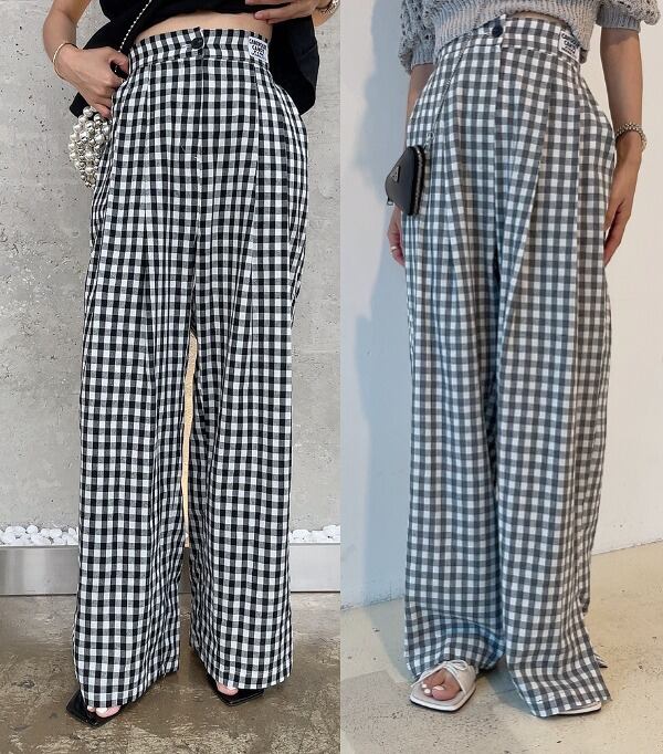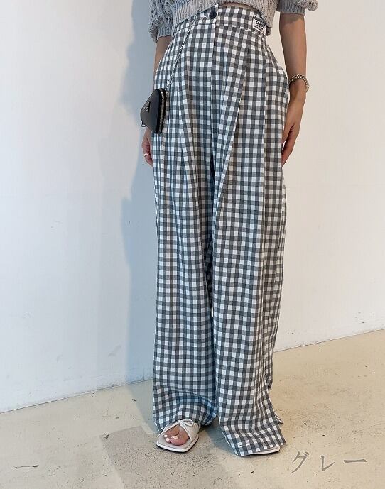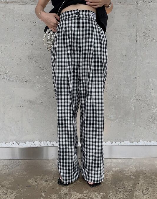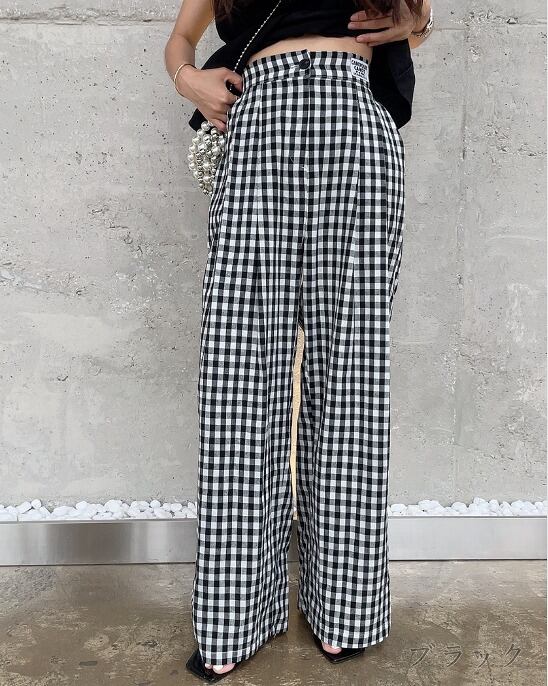 全2色 パンツ スリット 切り替え バイカラー 体型カバー 着痩せ チェック柄 カジュアル
