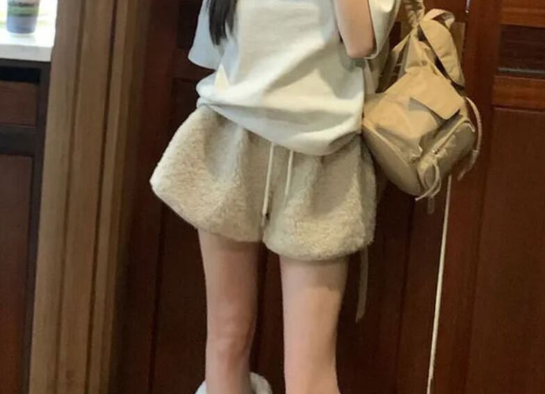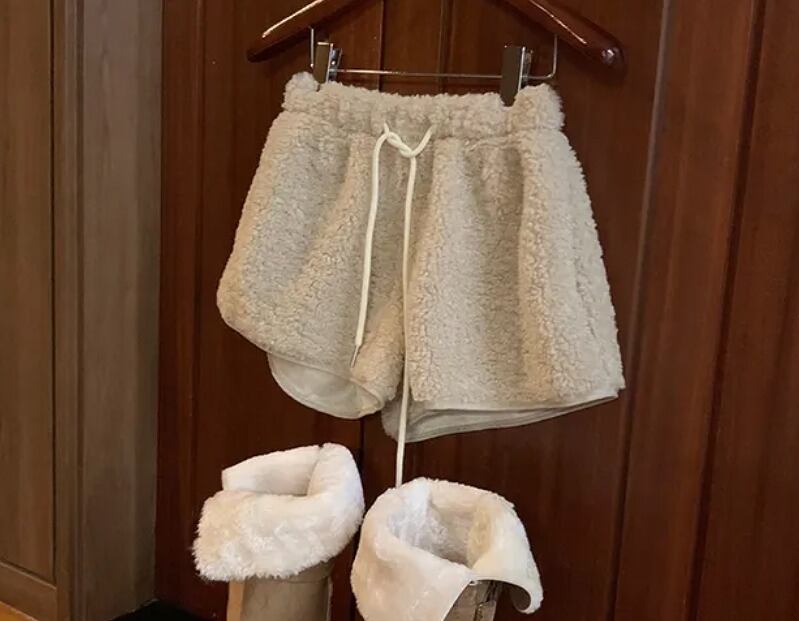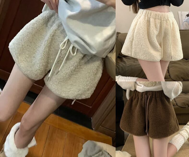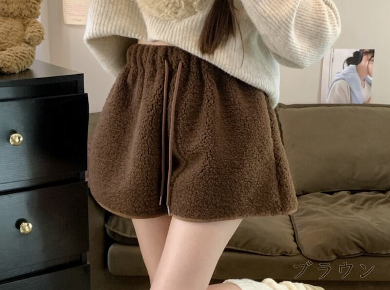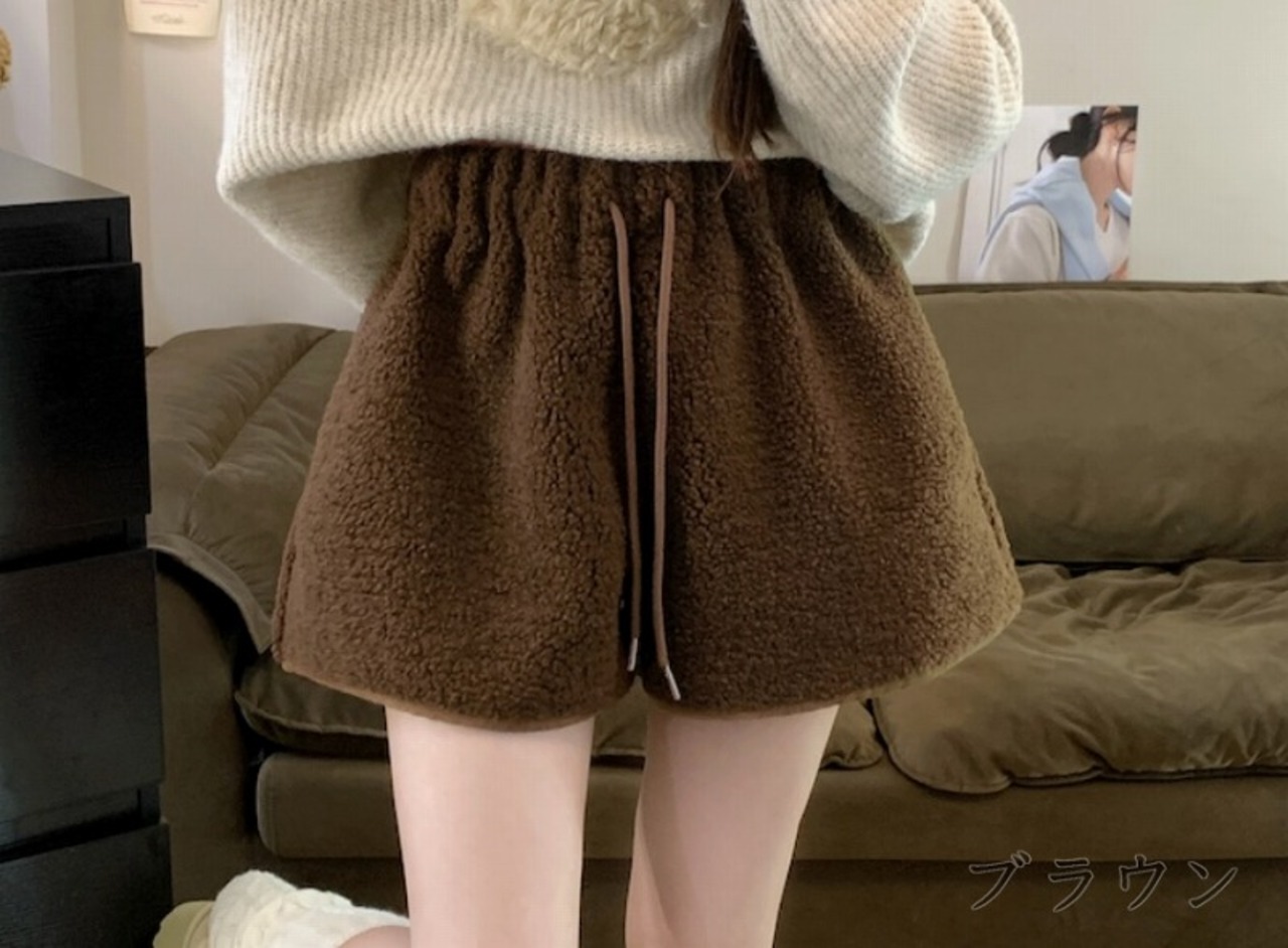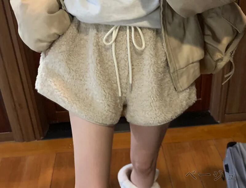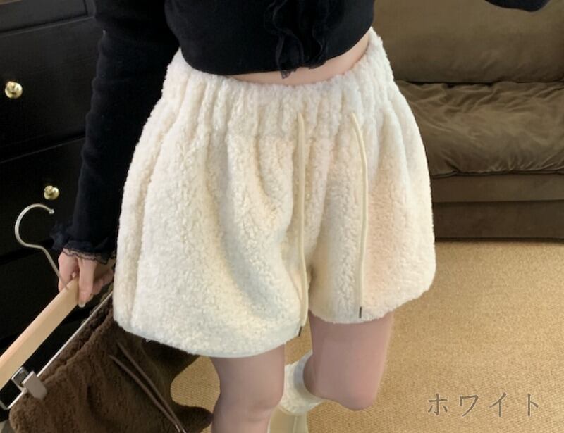 全3色 ショートパンツ ショーパン ファー付き 切り替え 体型カバー 着痩せ カジュアル