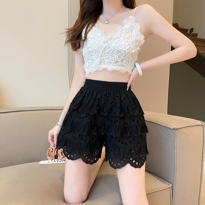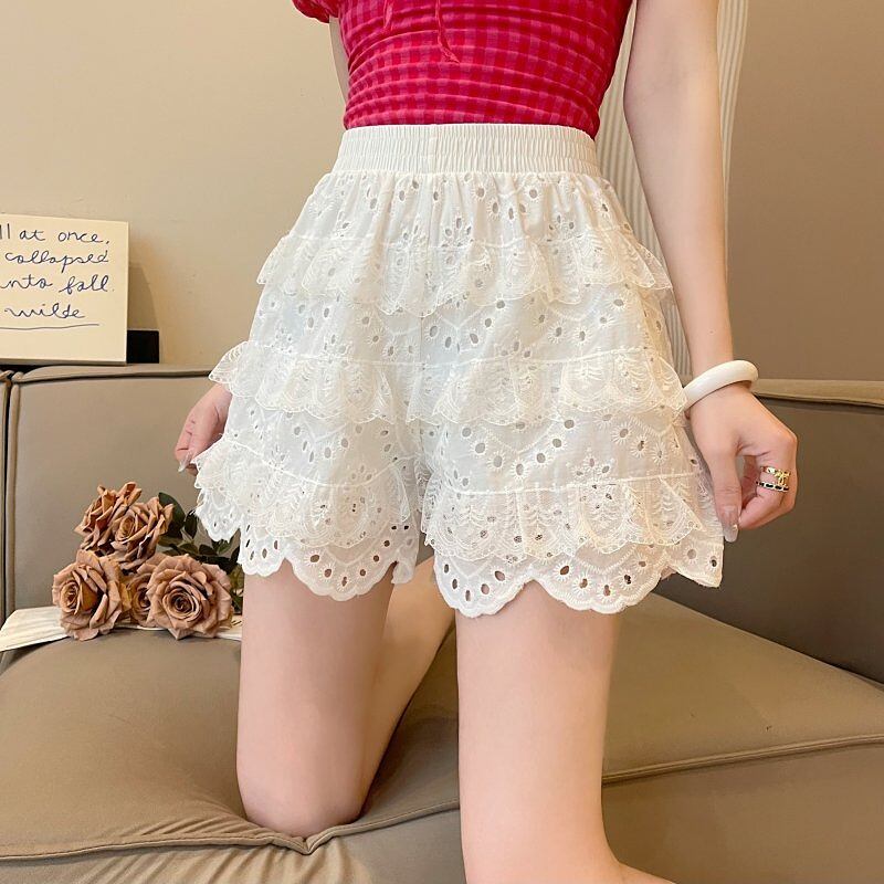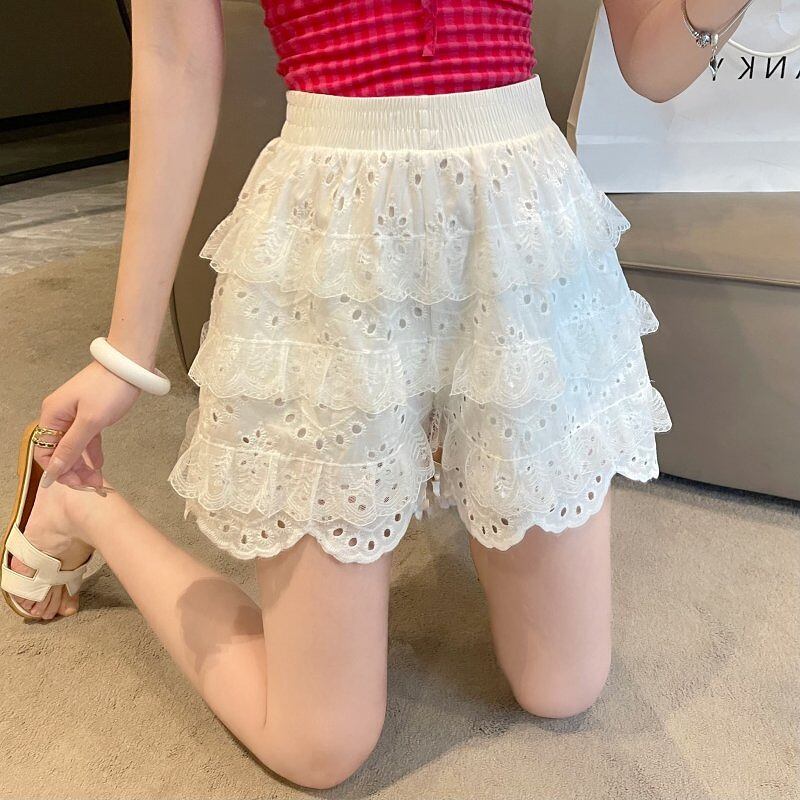 全2色 ショートパンツ ショーパン フリル 切り替え 体型カバー 着痩せ レース sweet系