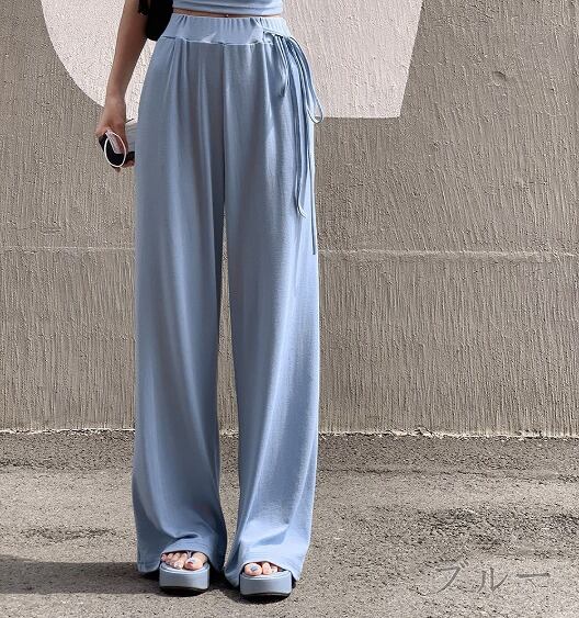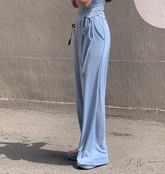全2色 ワイド バギーパンツ 切り替え 体型カバー 着痩せ シンプル カジュアル
