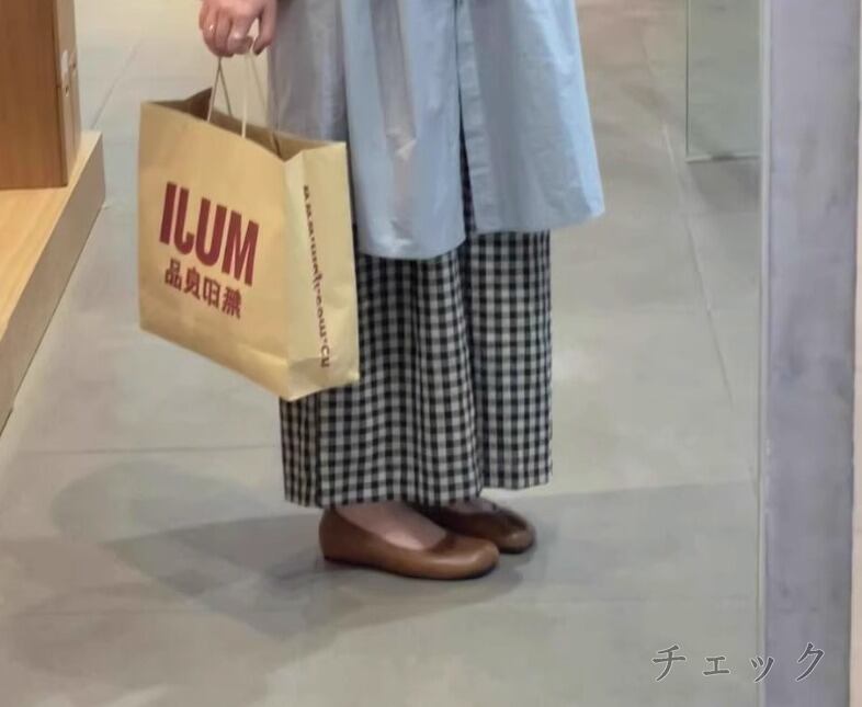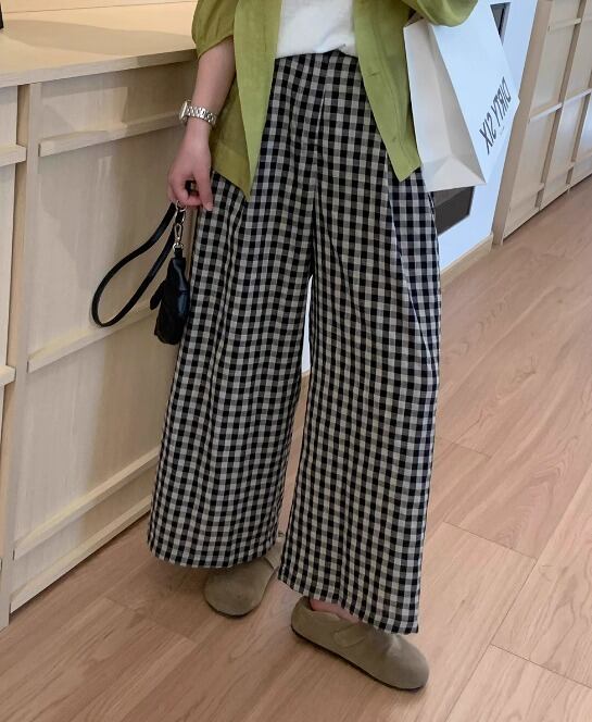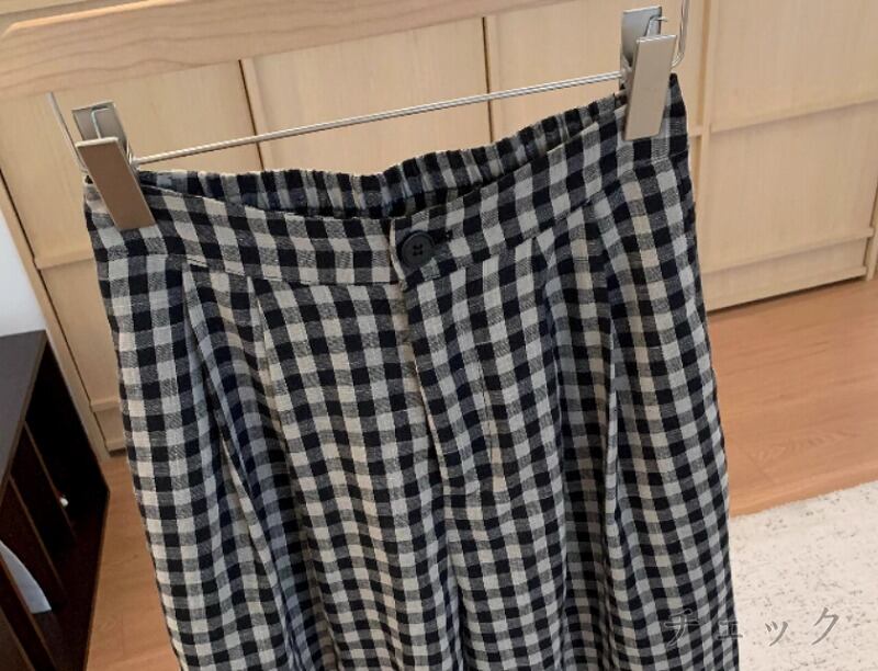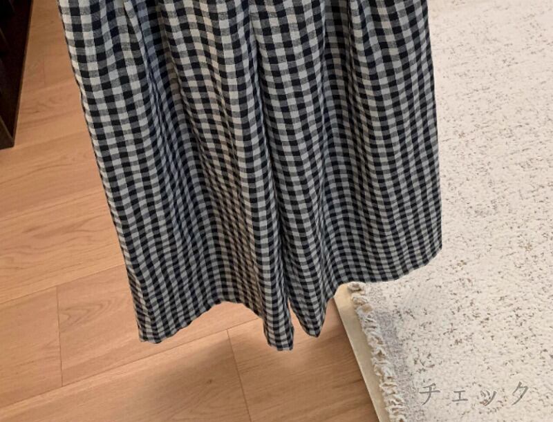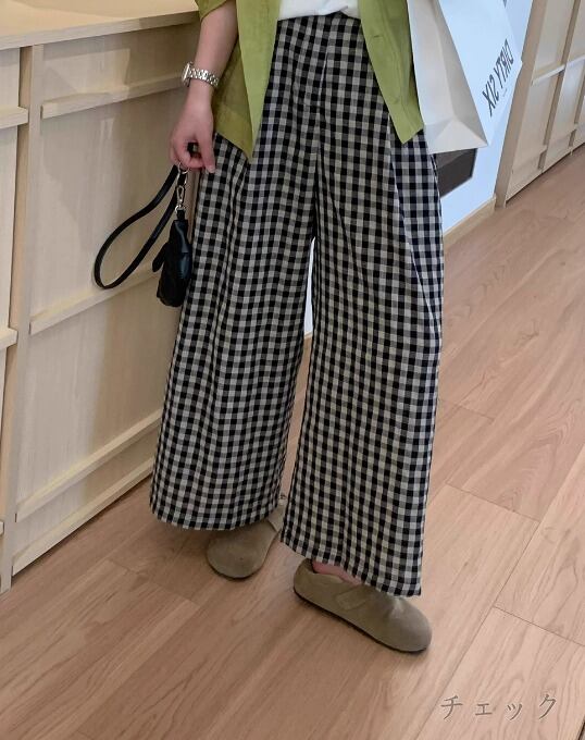 ワイド バギーパンツ 切り替え バイカラー 体型カバー 着痩せ チェック柄 シンプル カジュアル