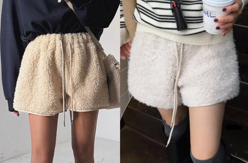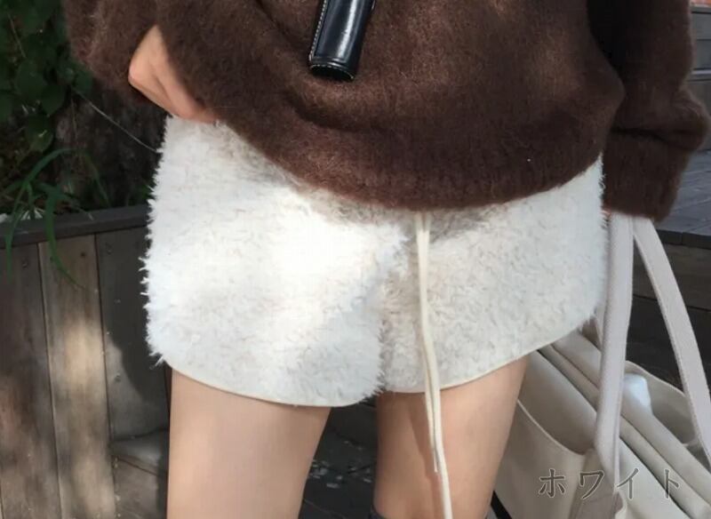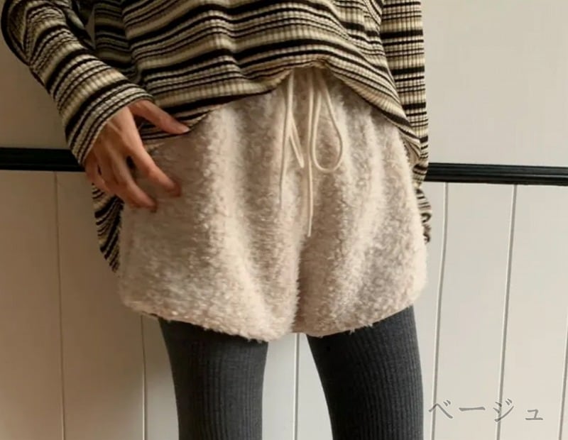 全2色 ショートパンツ ショーパン ファー付き 切り替え 体型カバー 着痩せ シンプル カジュアル