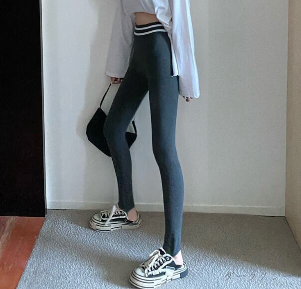全3色 パンツ 切り替え スリム 着痩せ 裏起毛 シンプル