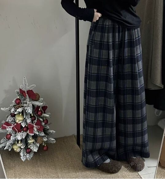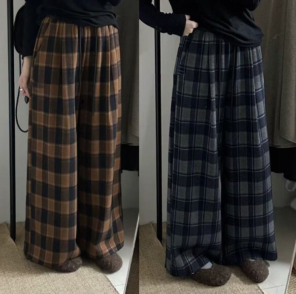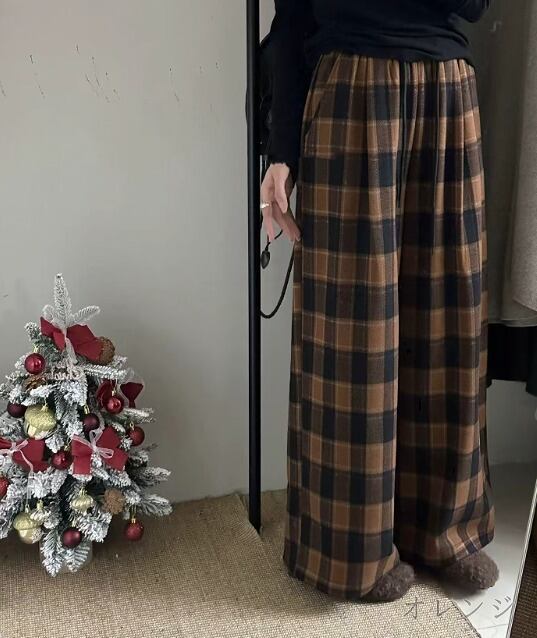全2色 パンツ 切り替え バイカラー ハイウエスト 体型カバー 着痩せ チェック柄 カジュアル