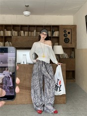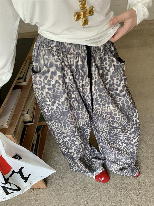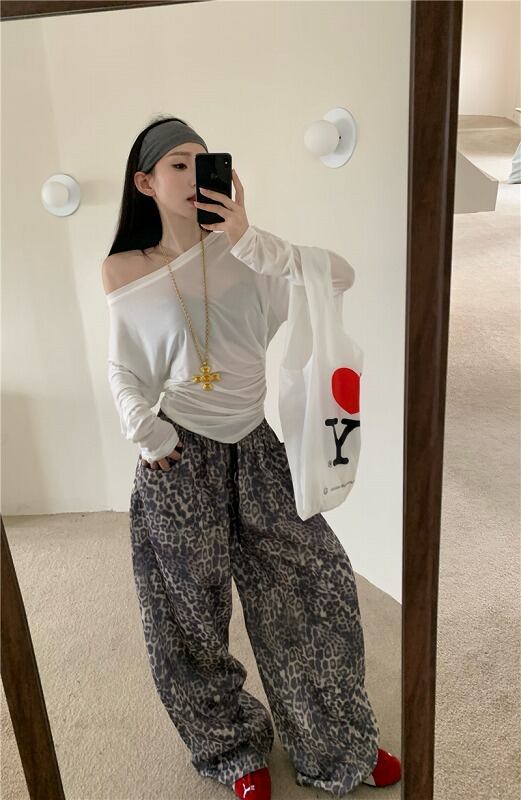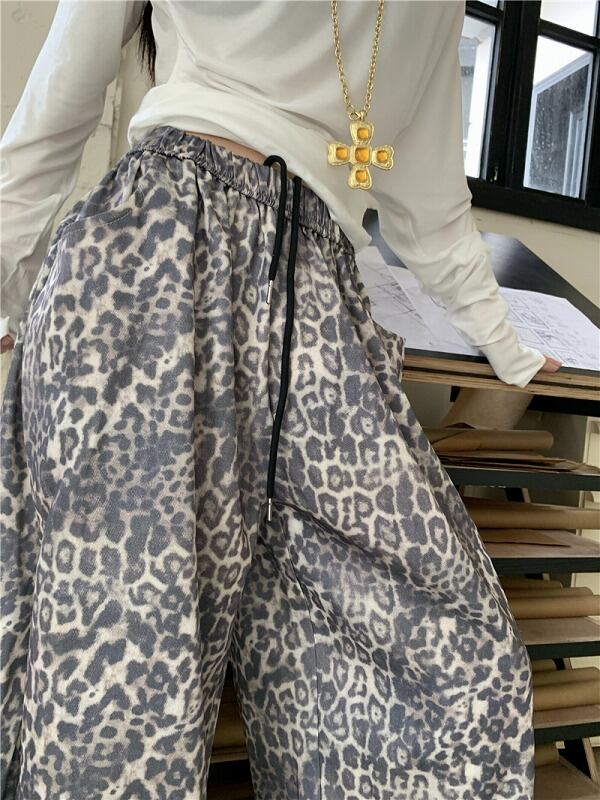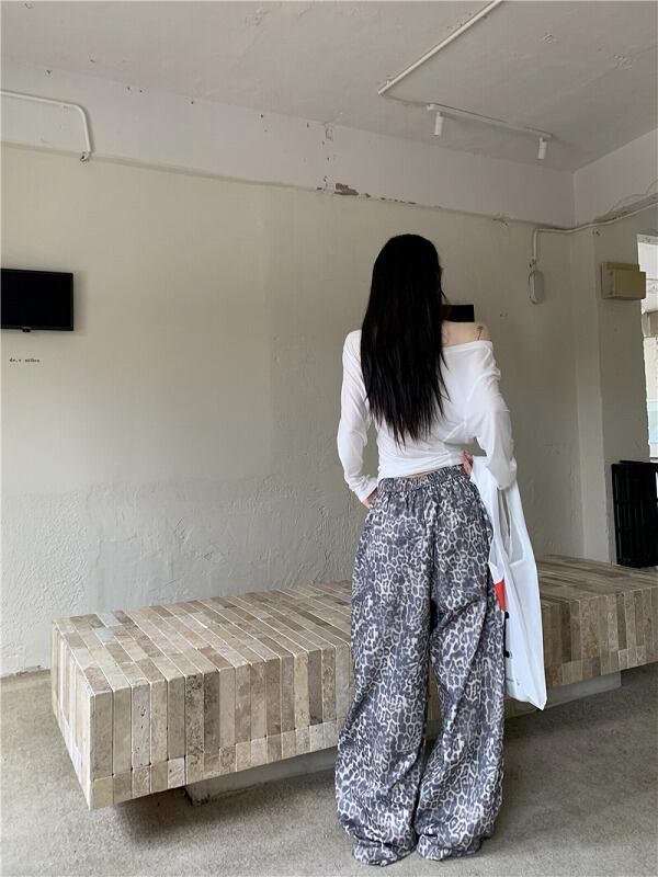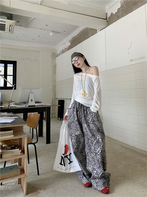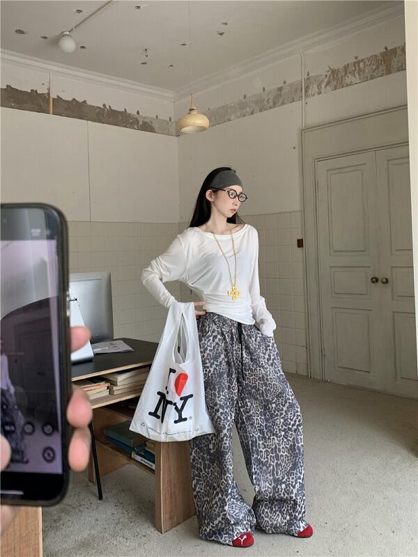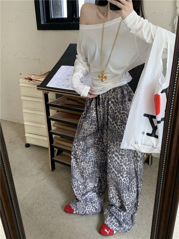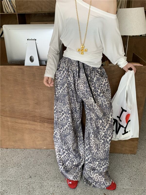 パンツ 切り替え バイカラー 体型カバー 着痩せ レオパード柄 シンプル カジュアル