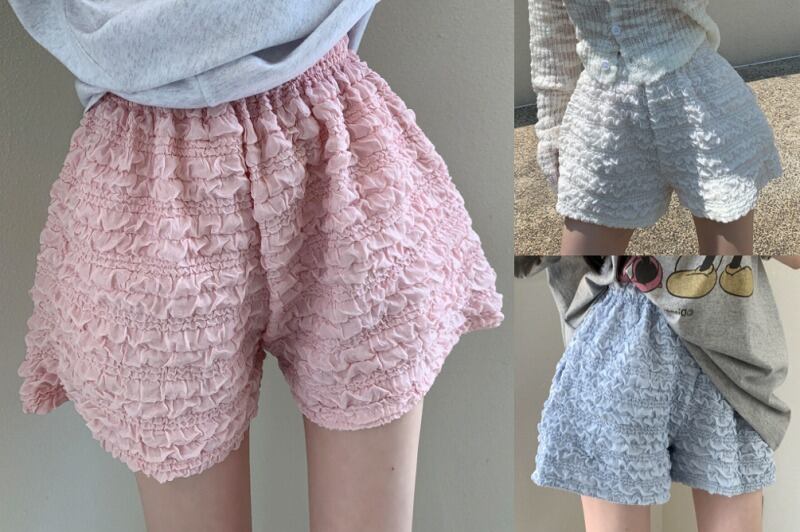 全4色 ショートパンツ ショーパン シャーリング 切り替え 体型カバー 着痩せ カジュアル