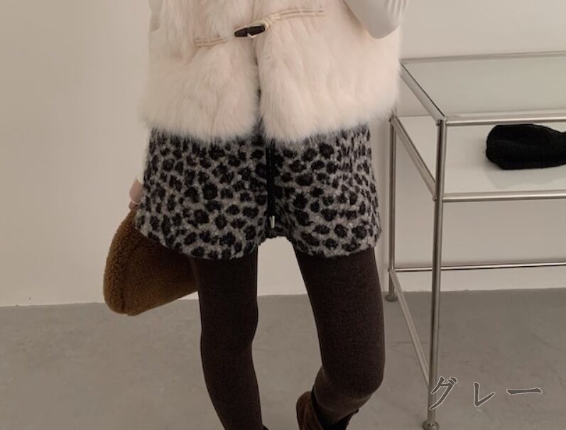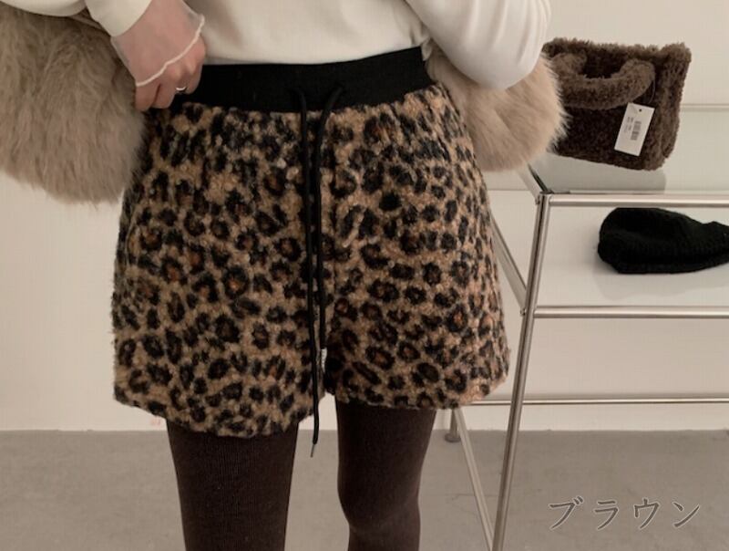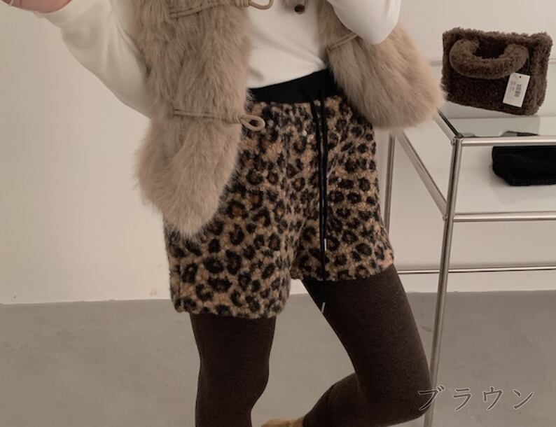 全2色 ショートパンツ ショーパン 切り替え バイカラー 体型カバー 着痩せ レオパード柄 カジュアル