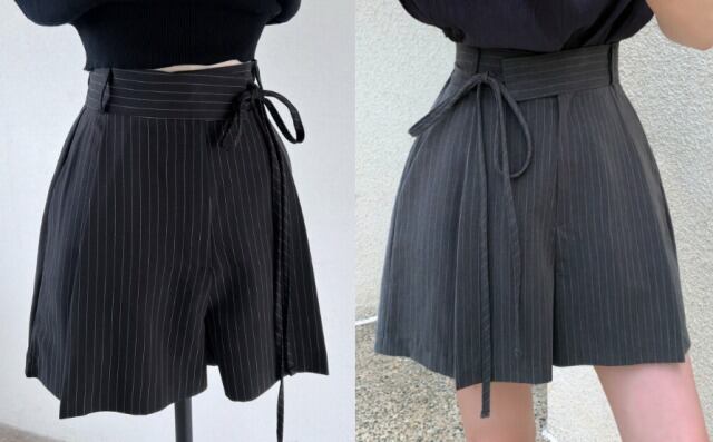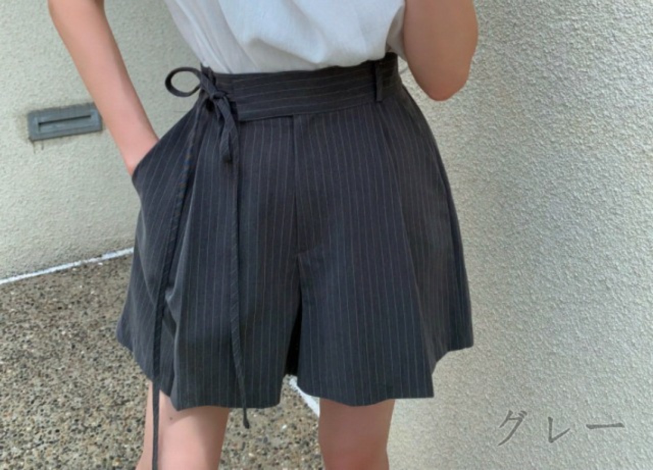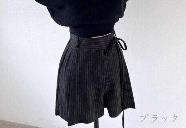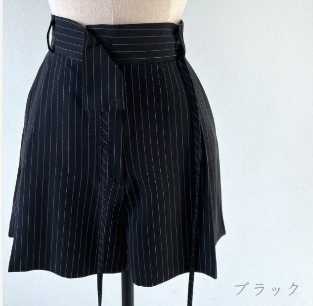 全2色 ショートパンツ ショーパン 切り替え バイカラー スリム 着痩せ ストライプ柄 シンプル